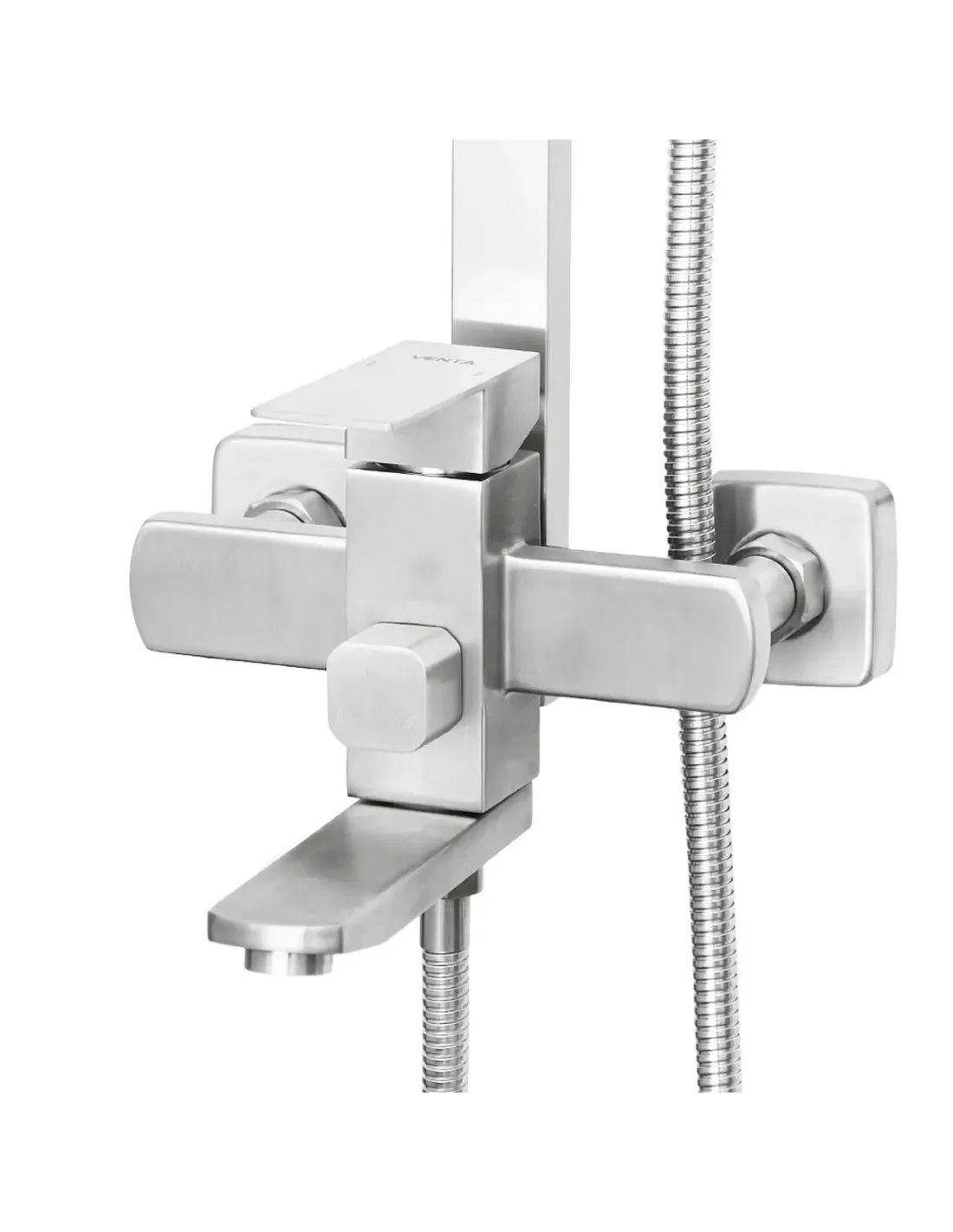 Душевая система с изливом Venta VC643KC оснащена изливом, верхнем душем и ручной лейкой, что обеспечивает больше функционала и удобства использования в ванной комнате. Душевая система является альтернативой смесителю для душа, превосходя его в функционале. Такую душевую систему можно установить в разные места пользования, такие как душевая кабинка, над ванной, в баню или сауну. Установка производится на поверхность стены – наружным монтажом. Душевая система изготовлена из латуни, долговечна и безотказна в эксплуатации. Все крепления со стандартным резьбовым соединением – 1/2 дюйма.