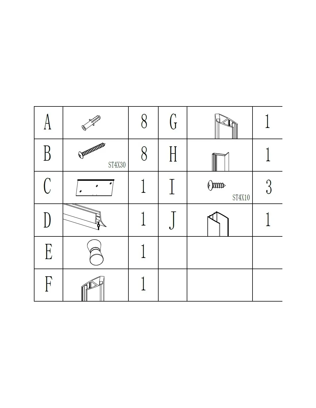Технические характеристики душевой стеклянной двери Bravo Prosna 90FS: