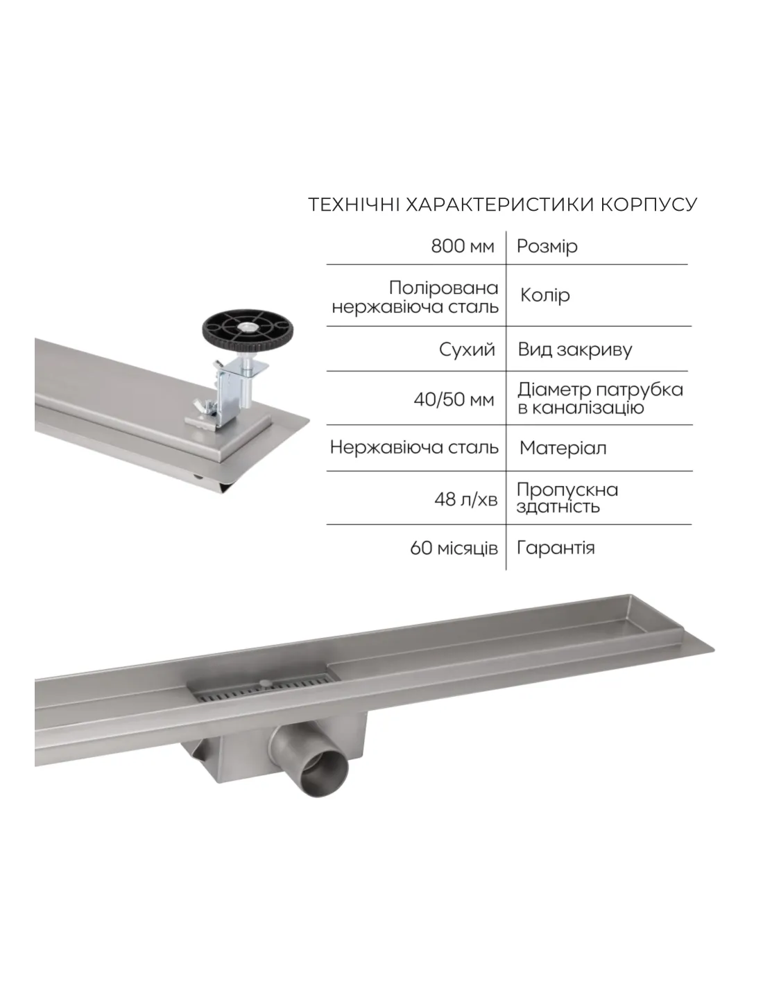 Трап линейный душевой Q-Тap FD800 NKS обладает ключевыми преимуществами: