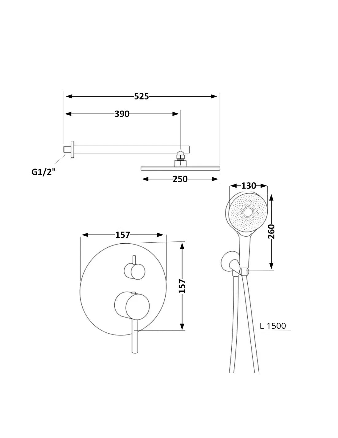 - Ручний душ - кругла лійка діаметром 132 мм;