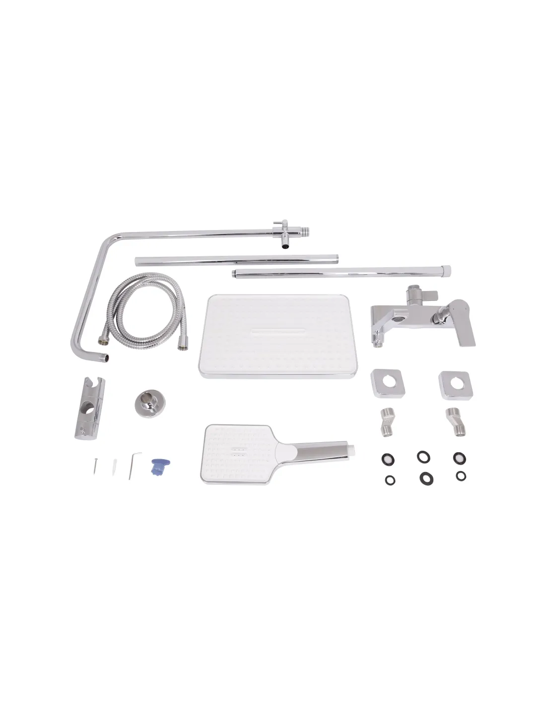Душева система з виливом Q-Tap Arvin QTARV111CRM48643 Chrome призначена для встановлення та використання у ванній кімнаті з метою особистої гігієни. Душова система - це альтернатива змішувачу для ванної. Душова система виготовлена з латуні, виконана у кольорі хром. Управління подачею води здійснюється за допомогою важеля, через який можна подавати воду на верхній душ, ручний душ або вилив. У комплектацію також входить телескопічна штанга, верхній душ, ручна лійка, душовий шланг та кріплення для фіксації. Гарантія 6 років. Країна-виробник: Чехія.