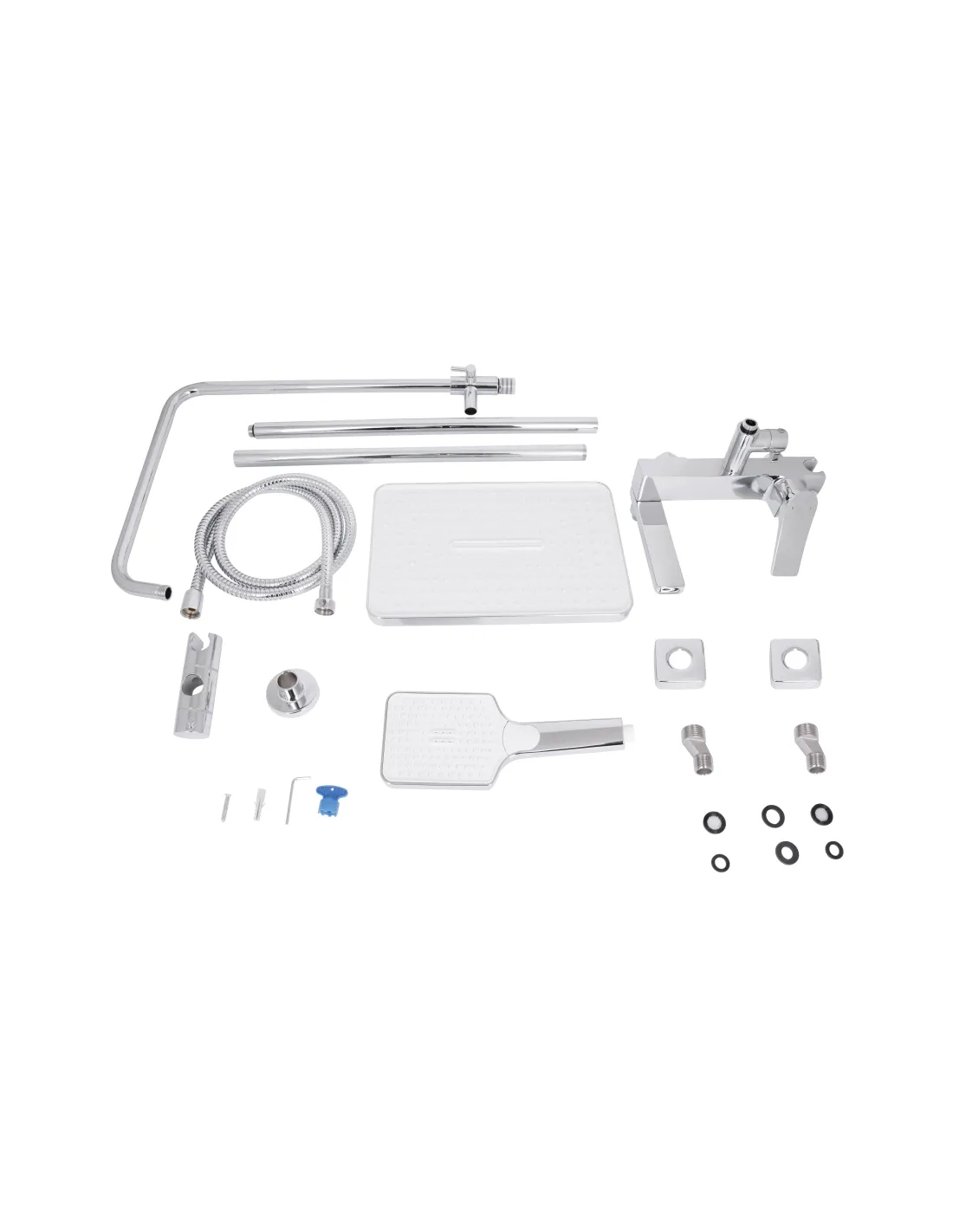 Душева система з виливом Q-Tap Nando QTNAN111CRM48653 Chrome призначена для встановлення та використання у ванній кімнаті з метою особистої гігієни. Душова система - це альтернатива змішувачу для ванної. Душова система виготовлена з латуні, виконана у кольорі хром. Управління подачею води здійснюється за допомогою важеля, через який можна подавати воду на верхній душ, ручний душ або вилив. У комплектацію також входить телескопічна штанга, верхній душ, ручна лійка, душовий шланг та кріплення для фіксації. Гарантія 60 місяців. Країна-виробник: Чехія.