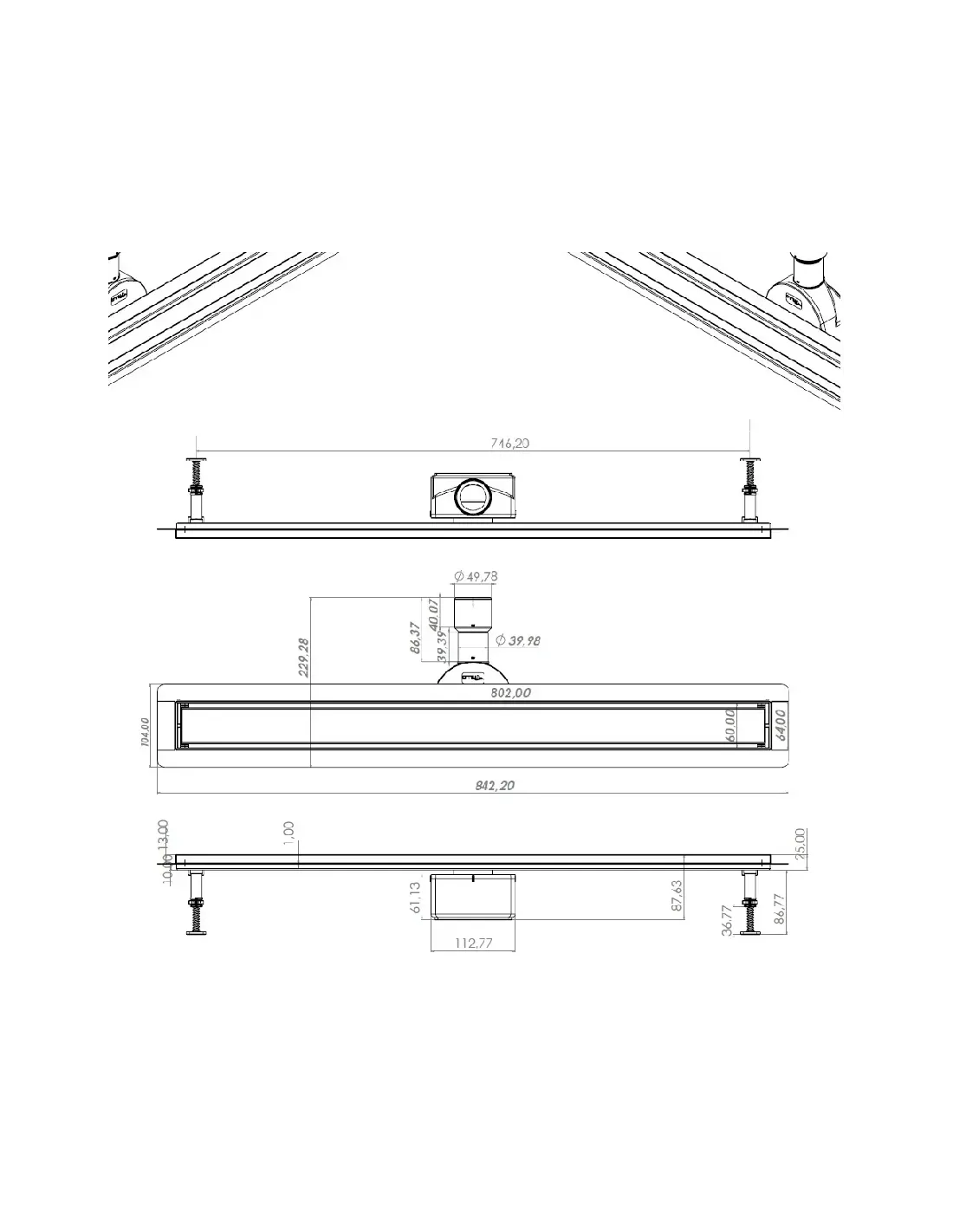 Трап лінійний душовий Tillo TM256-C-80 забезпечує ефективне відведення використаної води з душової кабіни в каналізацію. Монтується у підлогу. Матеріал – нержавіюча сталь. Затвор поворотний сухий. Довжина трапу – 840 мм. Матеріал сифону – пластик. Ґрати – нержавіюча сталь 800х64 мм. Висота трапу регулюється в діапазоні від 50 до 86 мм. Колір – сталевий. Гарантія на виріб 12 місяців. Країна-виробник – Туреччина.
