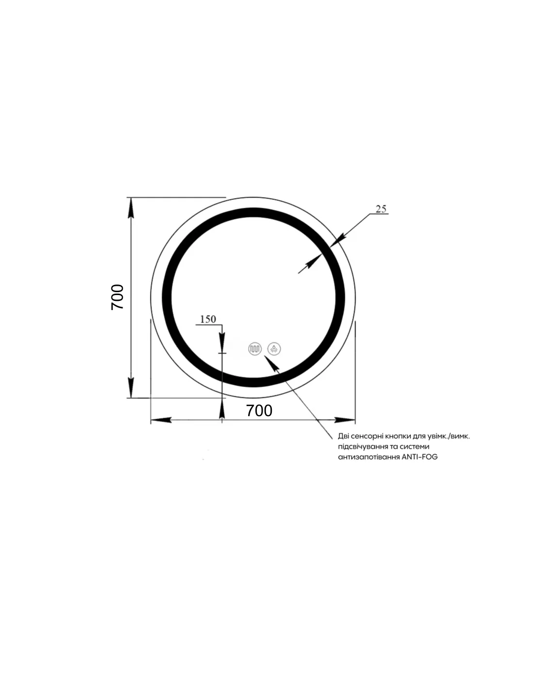 - Габарити виробу (ВхШхГ): 700х700х35 мм;