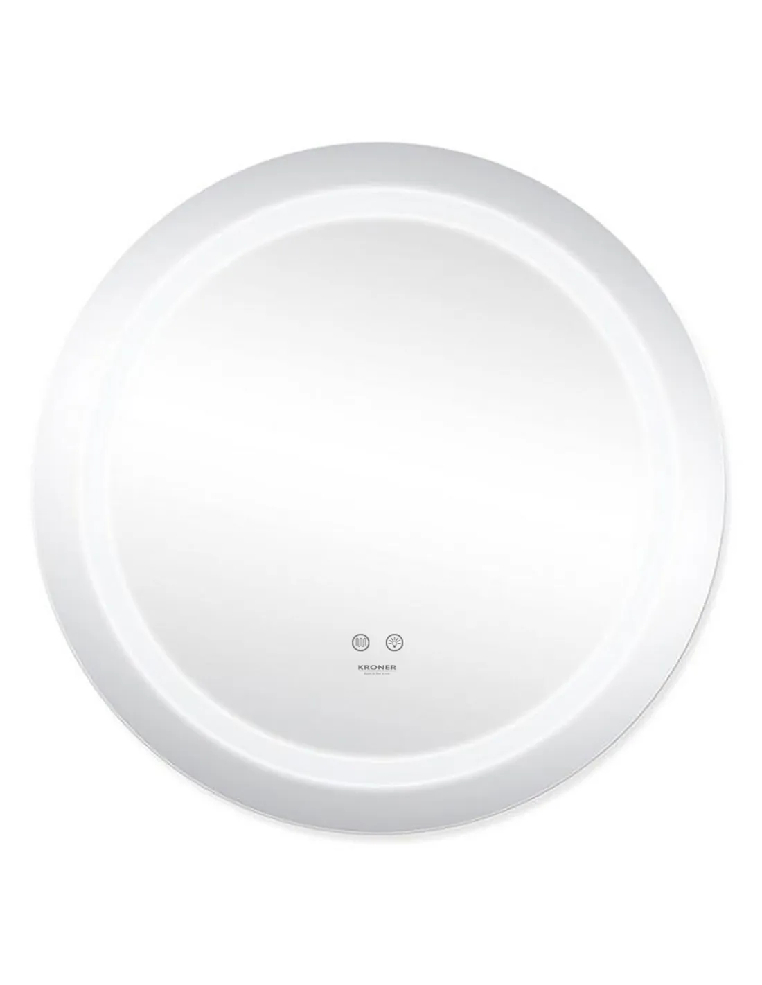 Дзеркало Kroner KRP Spiegel R2 - 6060 з LED-підсвічуванням та антизапітнінням призначене для зручного використання у ванній кімнаті. Використовується при гігієнічних процедурах, нанесенні макіяжу та гоління. Дзеркало має сучасний круглий дизайн. Матеріал дзеркального полотна – скло, корпус – алюміній/пластик. Тип установки – настінний із кріпленням на шурупи. Висота дзеркала 600 мм, ширина 600 мм, глибина 30 мм. Оснащено вбудованою LED-підсвічуванням по периметру дзеркала та функцією антизапотівання. Сенсорний вимикач, живлення від мережі 220 В. Гарантія – 36 місяців. Країна виробника - Німеччина.