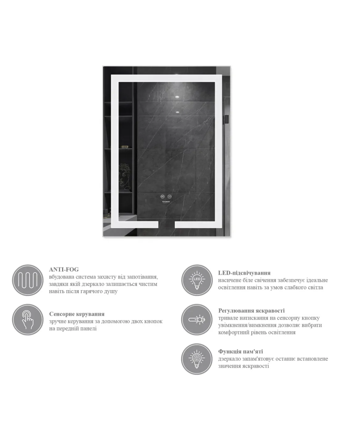 Дзеркало Kroner KRP Spiegel VR1-5080 з LED-підсвічуванням та антизапітнінням