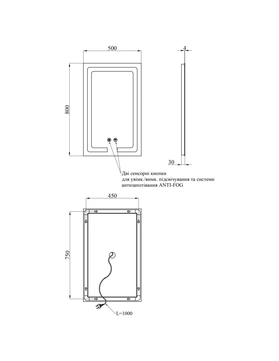 - Вимикач: сенсорний;