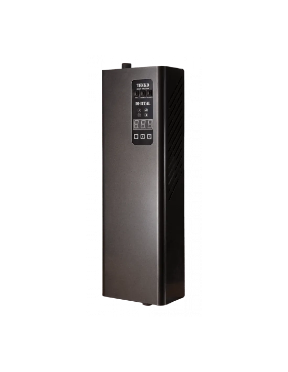 Електричний котел Tenko Digital має унікальний запатентований нагрівальний елемент, високу ефективність нагріву. Управління – електронне. Корпус надійно захищений від корозії порошковою фарбою, теплообмінник з антикорозійною обробкою, має подвійний захист від перегріву.