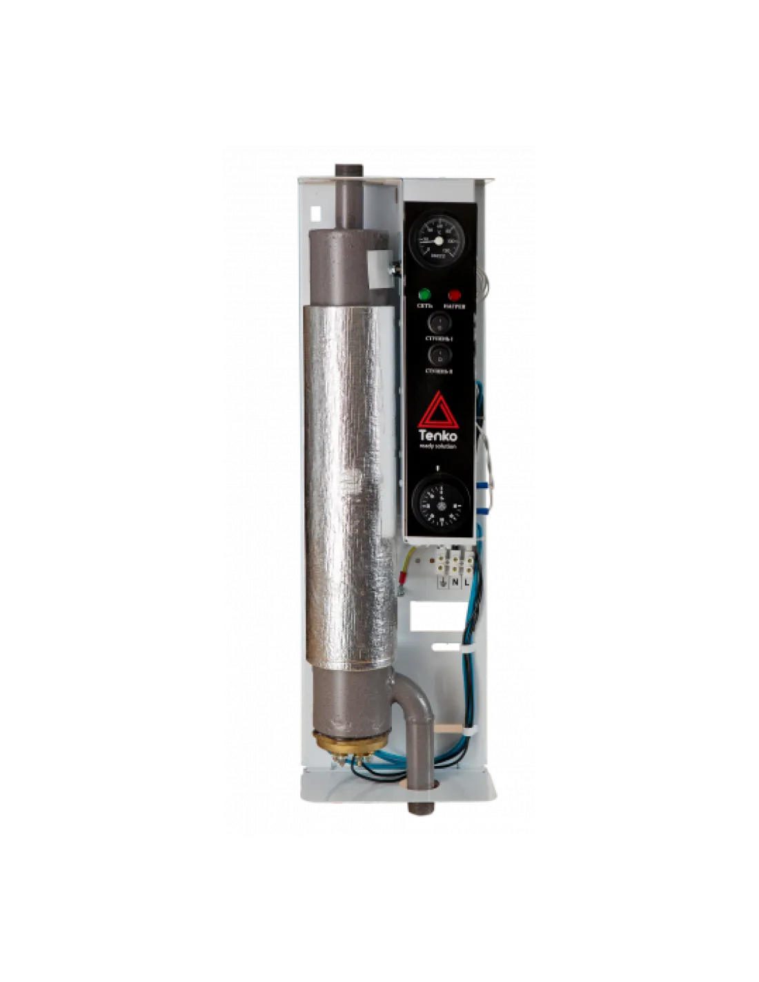 Одноконтурний електричний котел Tenko Економ призначений для теплопостачання приміщень із примусовою циркуляцією теплоносія у замкнутій системі опалення та автоматичної підтримки температурного режиму. Нагрівання теплоносія в системі опалення здійснюється за допомогою трубчастого електронагрівача пристрою. Використовуючи вбудований терморегулятор, здійснюється автоматична підтримка заданої температури теплоносія в системі опалення. Можна підключити до непрямого водонагрівача та до системи "теплої підлоги".