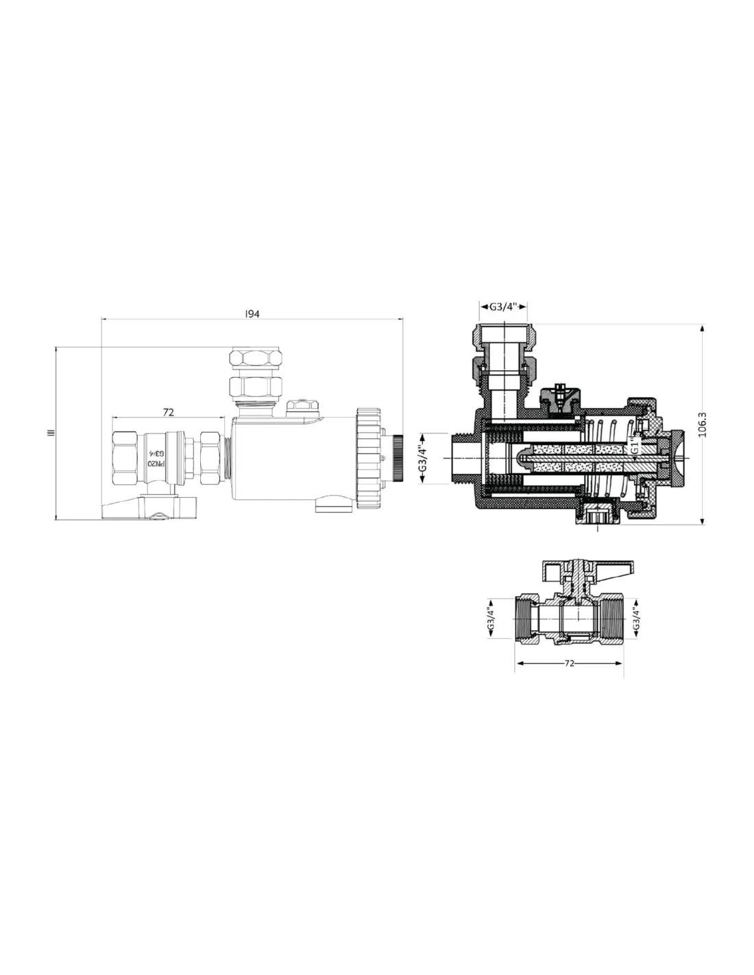 - Диаметр соединения: 3/4 дюйма,