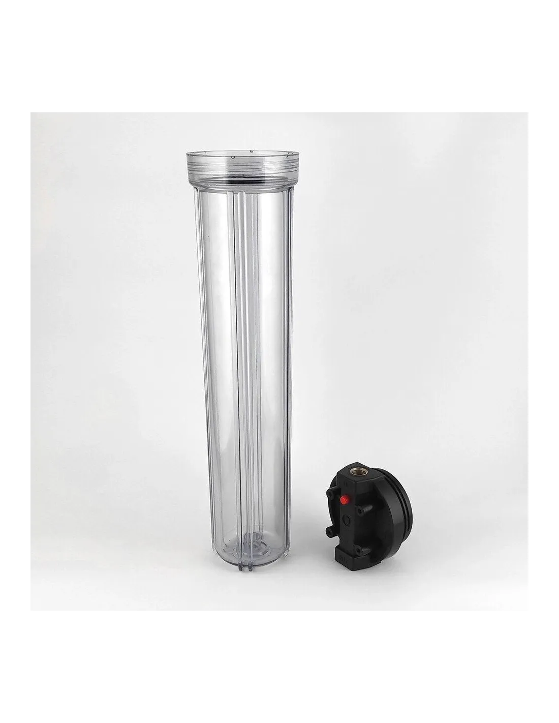 Фільтр колба Raifil 890 Slim 20 дюймів очищає воду від механічних домішок, зменшує жорсткість води, усуває активний хлор та органічні сполуки. Виготовлена із міцного пластику. Має компактність, надійність, довговічність і стійкість до перепадів магістрального тиску. Складається з 2-х основних частин: кришка з пластиковим різьбленням 3/4 дюйма, колба з кільцем ущільнювача і латунними портами. Передбачена для великого спектру картриджів. Кнопка скидання тиску полегшує заміну картриджів. Кронштейн металевий для кріплення колби до стіни в комплекті. Використовується для зняття навантаження на фітинги, запірну арматуру або труби водопровідної мережі.