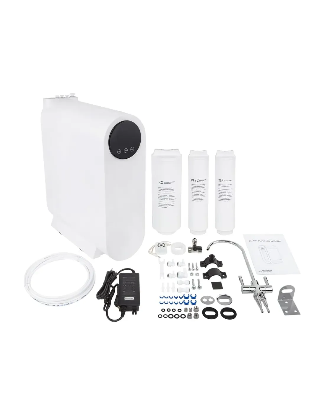 Фильтр обратного осмоса ITAL Smart Delicious - это интеллектуальная система очистки воды нового поколения, разработанная для обеспечения максимального уровня безопасности и комфорта. Благодаря высокой производительности и компактному корпусу устройство легко размещается под раковиной, обеспечивая мгновенный доступ к кристально чистой воде без необходимости использования накопительного бака. Система автоматически контролирует рабочие процессы, что делает ее эксплуатацию максимально простой и надежной.