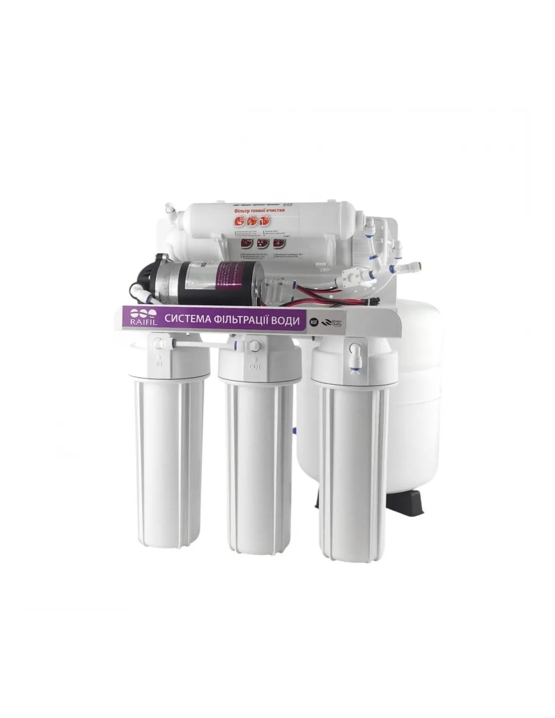 Фільтр зворотного осмосу Raifil Grando 5+ Standart з мінералізатором легкий у встановленні та експлуатації. Надійний та зручний помічник при очищенні побутової води. Основне призначення - це якісне очищення і мінералізація води, що поступає з напором не менше 2,5 атмосфер для побутового використання та пиття. Усуває 99,9% забруднень у воді.