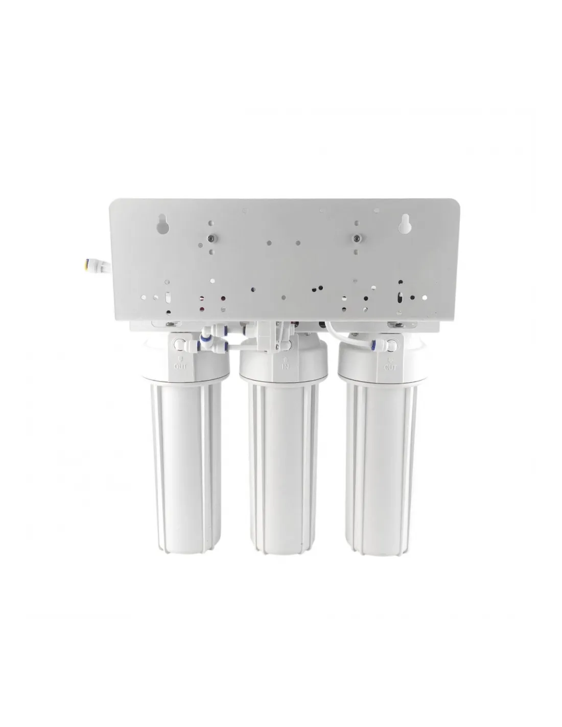 Фільтр зворотного осмосу Raifil Grando 5+ Standart призначений для очищення води від усіх відомих та невідомих забруднювачів. Застосовується для холодної води в квартирі або будинку, де необхідна висока продуктивність та якість очищення води. Є п`ятиступінчастою системою. Кріпиться на кронштейнах, стійких до механічних навантажень. Комплектація: три префільтри (механічний 5 мкм, вугільний карбон-блок 10 мкм, механічний 1 мкм), зворотньоосмотична мембрана 50 GAL, постфільтр тонкого очищення, накопичувальний бак металевий 10 літрів, кран для питної води, шланг для підключення, дренажний підйом. Типорозмір картриджів: 10 дюймів Slim. Типорозмір мембрани: 50 GAL. Продуктивність: до 190 літрів на добу. Робоча температура: від 4 до 35 градусів за Цельсієм. Габарити (ДхШхГ): 390 x 450 x 190 мм. Діаметр підключення: 1/4”. Гарантія 12 місяців. Країна виробник - Південна Корея.