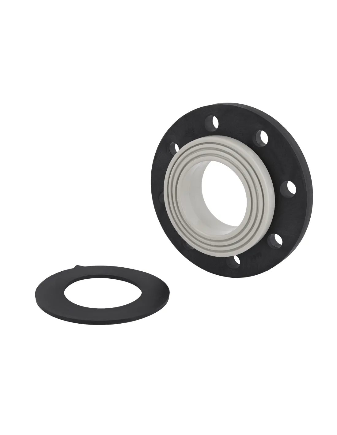 Втулка изготовлена из высокопрочного полипропилена PPR PN20, который сваривается с трубой, а стальной фланец обеспечивает прочность и жесткость для болтового соединения. Разъемная конструкция узла позволяет проводить техническое обслуживание или замену оборудования без необходимости разрезания и повторной сварки трубопровода.