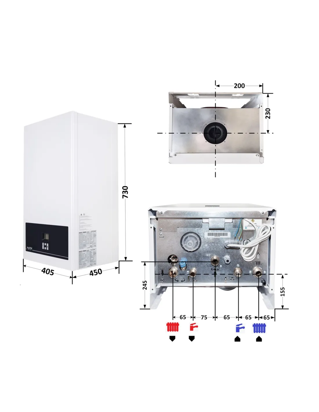 Газовий котел Airfel DigiFEL Premix призначений для гарячого водопостачання та опалення житлових будинків та квартир без облаштування системи для димоходу. Тип казана – газовий, конденсаційний. Встановлюється на стіну. Площа опалення до 360 кв. Потужність – 36 кВт. ККД – 96,7%. Об`єм розширювального бака – 12 л. Розміри – 405х450х730 мм. Вага секції 48 кг. Гарантія 3 роки. Країна виробник – Туреччина.