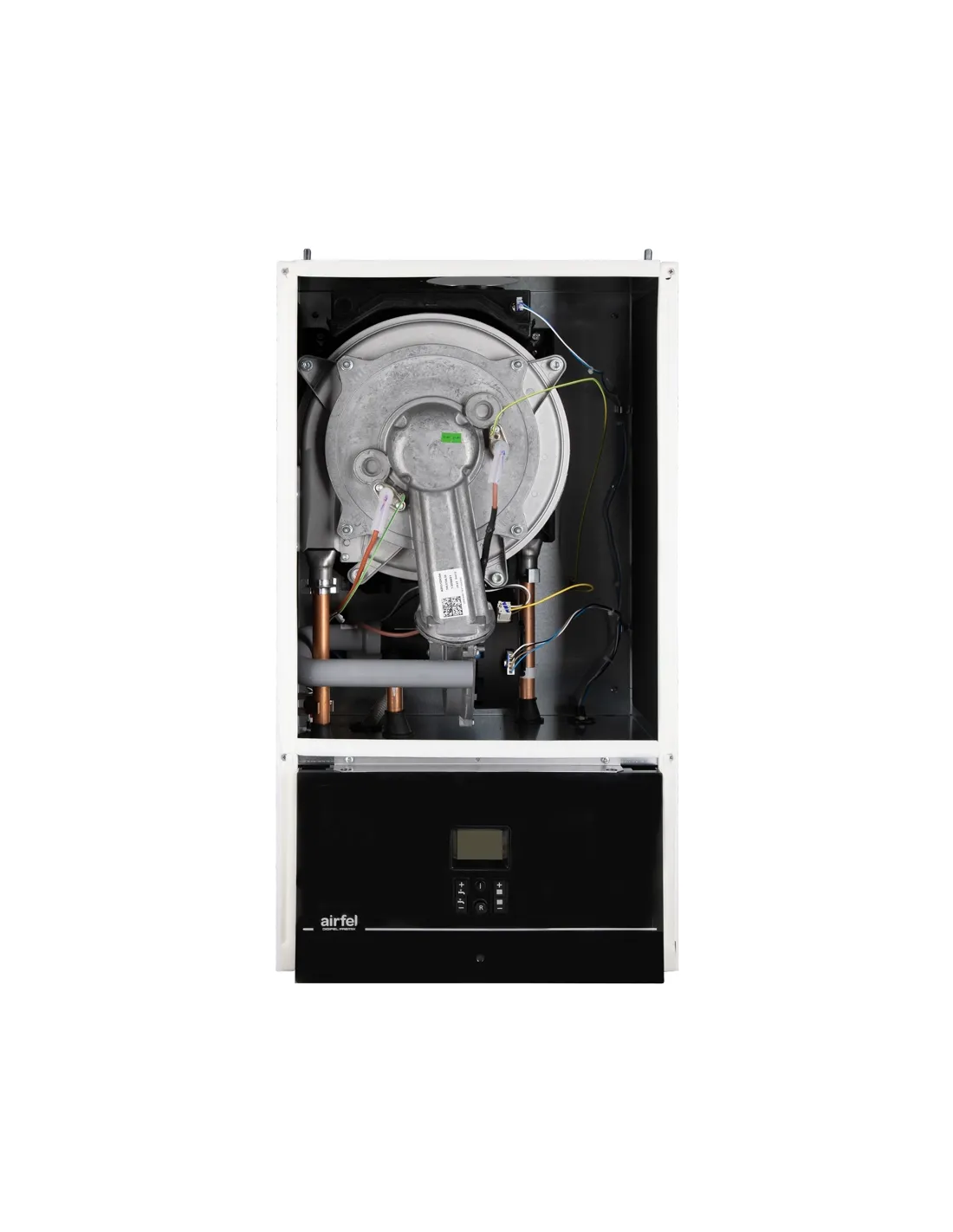 Газовий котел Airfel DigiFEL Premix – це нова технологія в опалювальній техніці. Являє собою турбований конденсаційний котел з герметичною камерою згоряння та двома роздільними теплообмінниками. У простих газових котлах відпрацьовані продукти горіння одразу віддаляються в димар. Конденсаційний котел використовує додаткову енергію конденсації пари для нагрівання води: використання тепла, що міститься в рідині вихідних газів. Ця волога осідає на стінки теплообмінника і віддає своє тепло. Завдяки цьому для отримання необхідної температури спалюється значно менше природного газу, а коефіцієнт корисної дії збільшується до 17%.