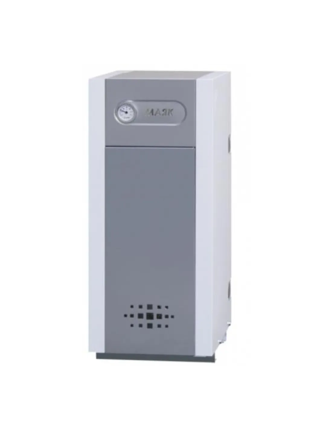 Котел газовий Маяк АОГВ – призначений для опалення житлових будівель та приміщень побутового призначення, в опалювальних системах із природною або примусовою циркуляцією води. Тип котела - газовий, димохідний. Відведення продуктів згоряння через димар. Котел енергонезалежний, у роботі не використовує електрику. Встановлюється на підлогу чи спеціальну стійку для АОГВ. Площа опалення до 80 кв. Номінальна потужність – 8 кВт. ККД – 92%. Розміри – 800х350х345 мм. Гарантія 36 місяців. Країна виробник – Україна.