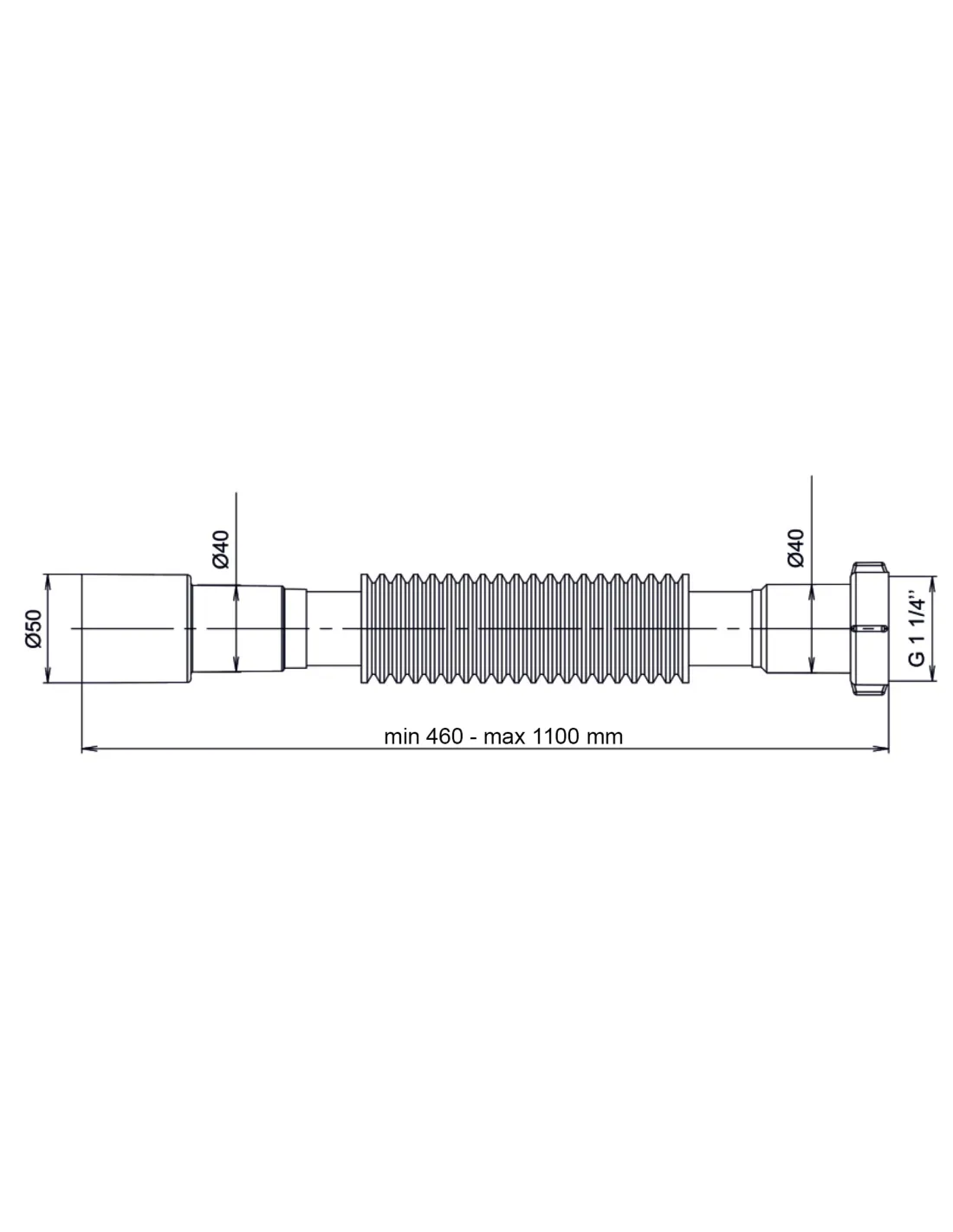 Гофротруба сполучна Optimum OPTI-00048 1 1/4 дюйма х 40/50, 460-1100 мм, з накидною гайкою – гнучке з`єднувальний пристрій, що забезпечує надійне відведення стоків. Дозволяє нівелювати неточності при установці сантехніки.
