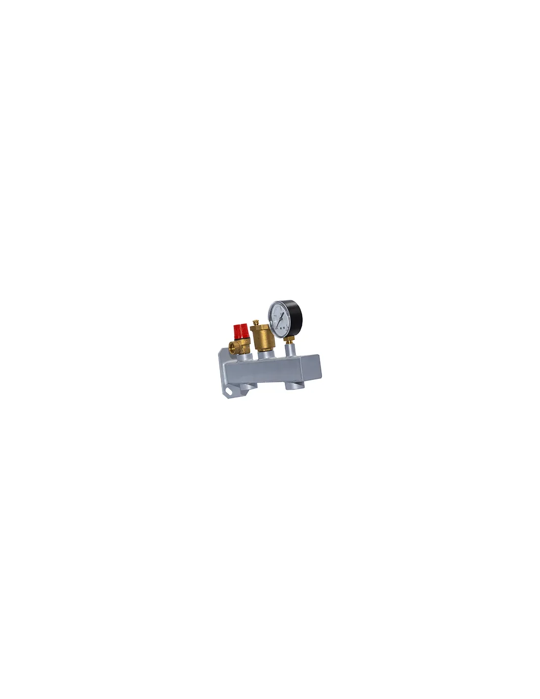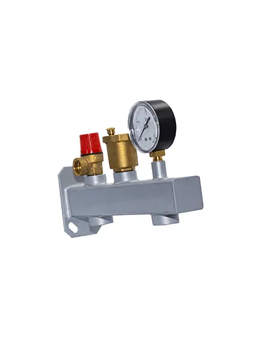 Група безпеки котла Fado 3/4 дюйма - консольна група безпеки з підвищеним ресурсом, встановлюється на котлах для контролю тиску в системі і для скидання зайвого повітря. Відведення повітря скидає надмірне повітря в автоматичному режимі. Група безпеки також містить запобіжний клапан, який зливає воду, якщо тиск перевищує 3 бар, таким чином захищаючи компоненти системи від підвищеного тиску. Консоль обладнана різьбовими патрубками - приєднувальним та для мембранного бака, фланцем настінного кріплення.