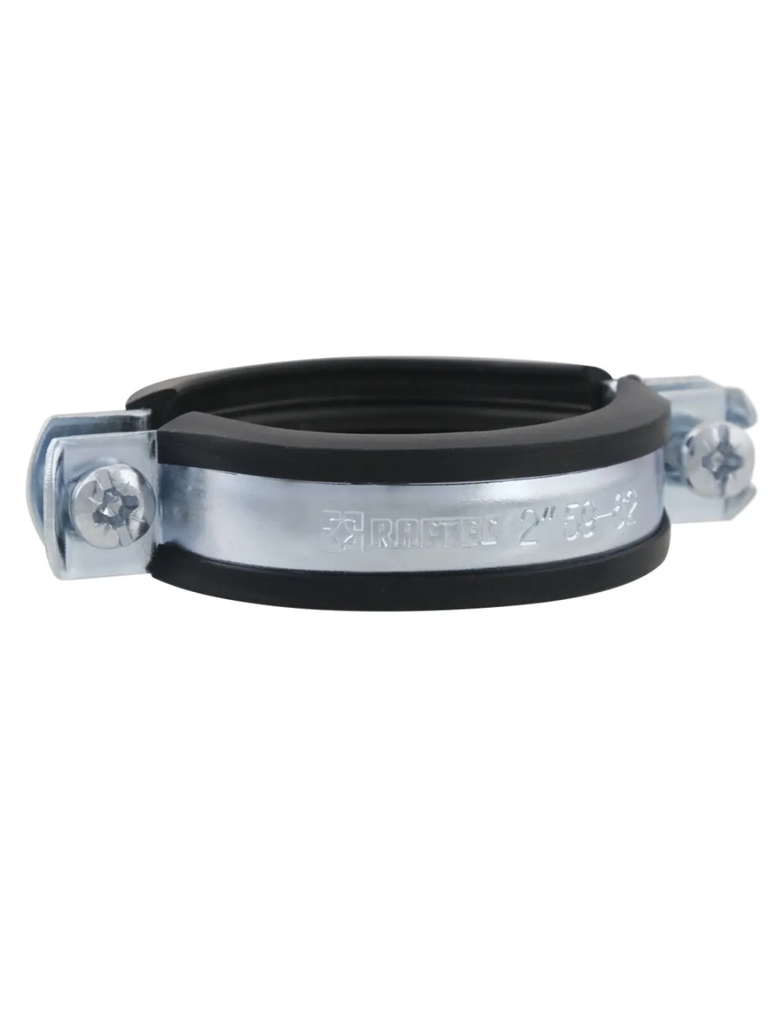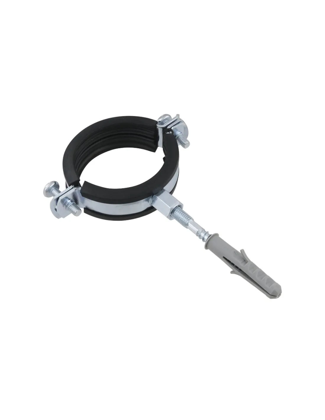 Хомут для труби 59 - 62 мм Raftec сірий у зборі з гвинтом 8 х 100 і дюбелем - це кріпильний виріб, що складається з двох половинок, зі стяжними болтами, а також оснащений вібро- і звукоізолюючим профілем та привареною сполучною. Також хомути укомплектовані шпилькою-саморізом та пластиковим дюбелем, що дозволяє зробити монтаж труби до нерухомої горизонтальної або вертикальної поверхні.