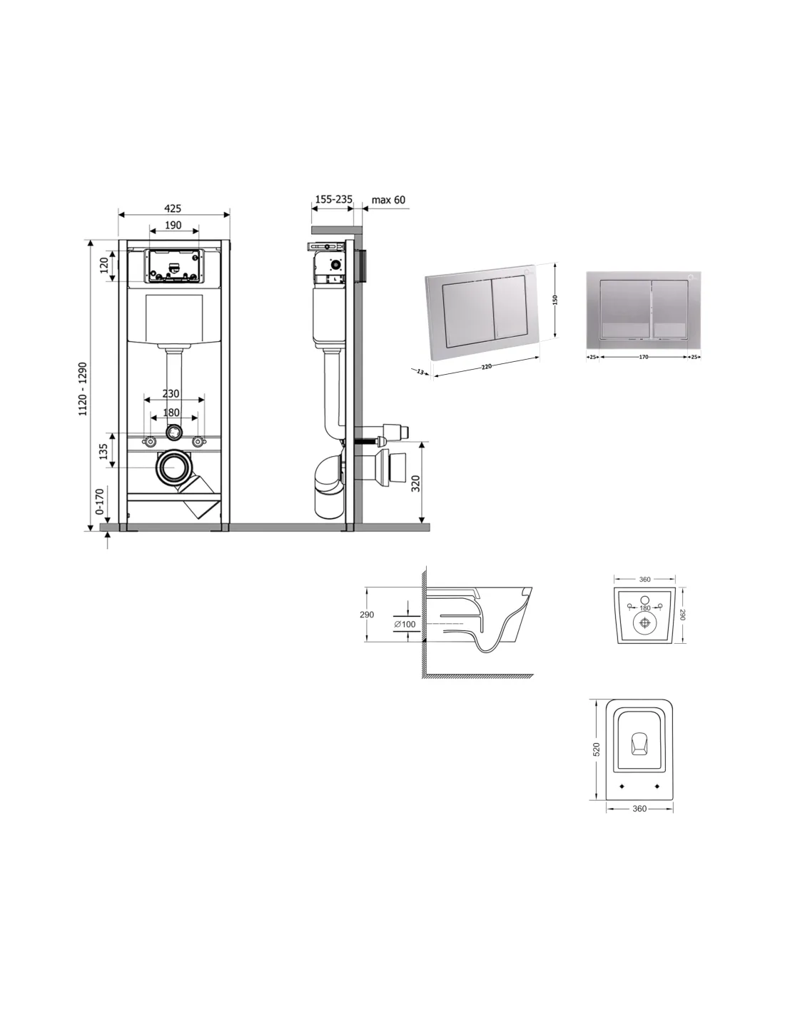 - Габарити унітазу (ДхШхГ) - 520х360х290 мм;