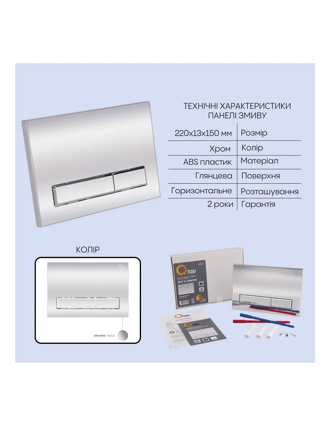 - Габарити панелі змиву (ДхШхГ) - 220х13х150 мм;