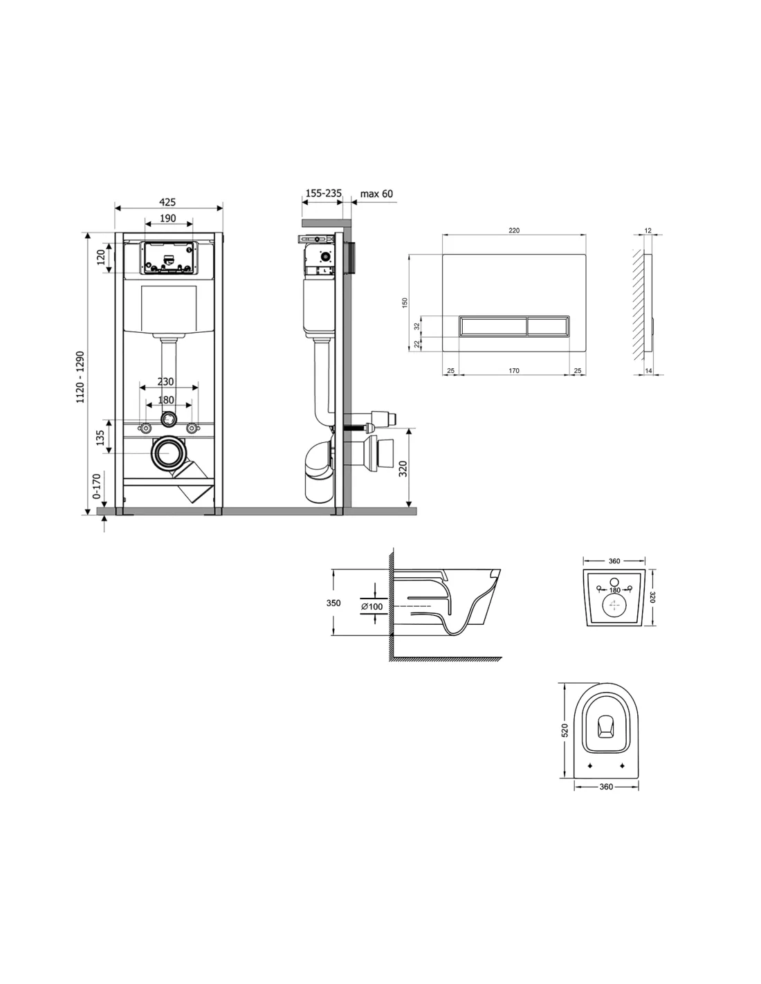 - Габарити унітазу (ДхШхГ) - 520х360х320 мм;