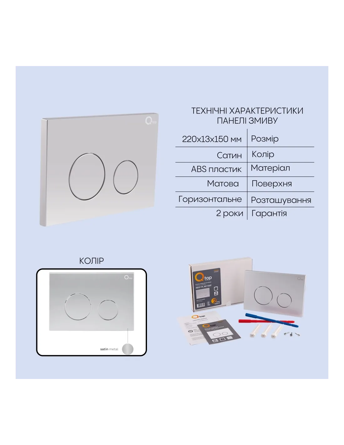 - Габарити панелі змиву (ДхШхГ) - 220х13х150 мм;
