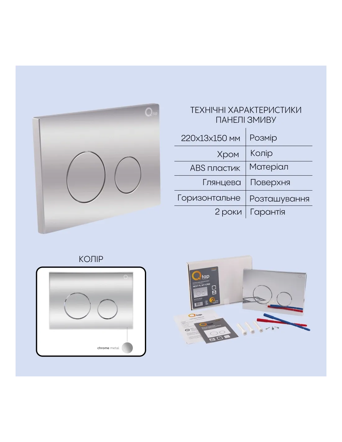 - Габарити панелі змиву (ДхШхГ) - 220х13х150 мм;