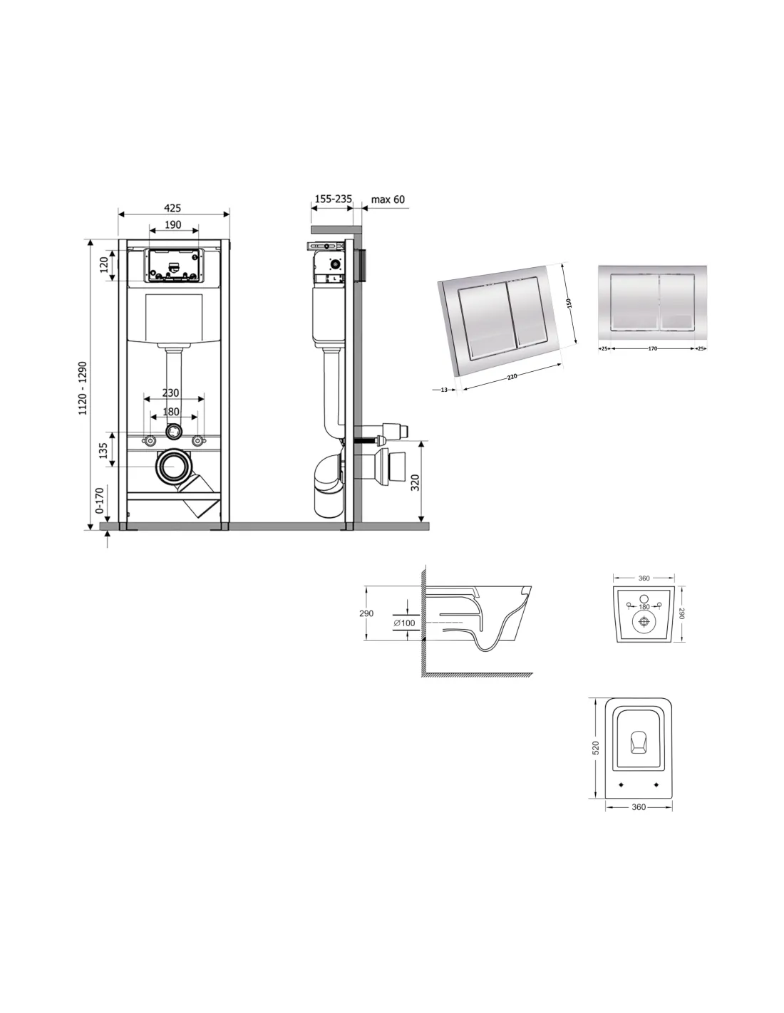 - Габариты унитаза (ДхШхГ) - 520х360х290 мм;