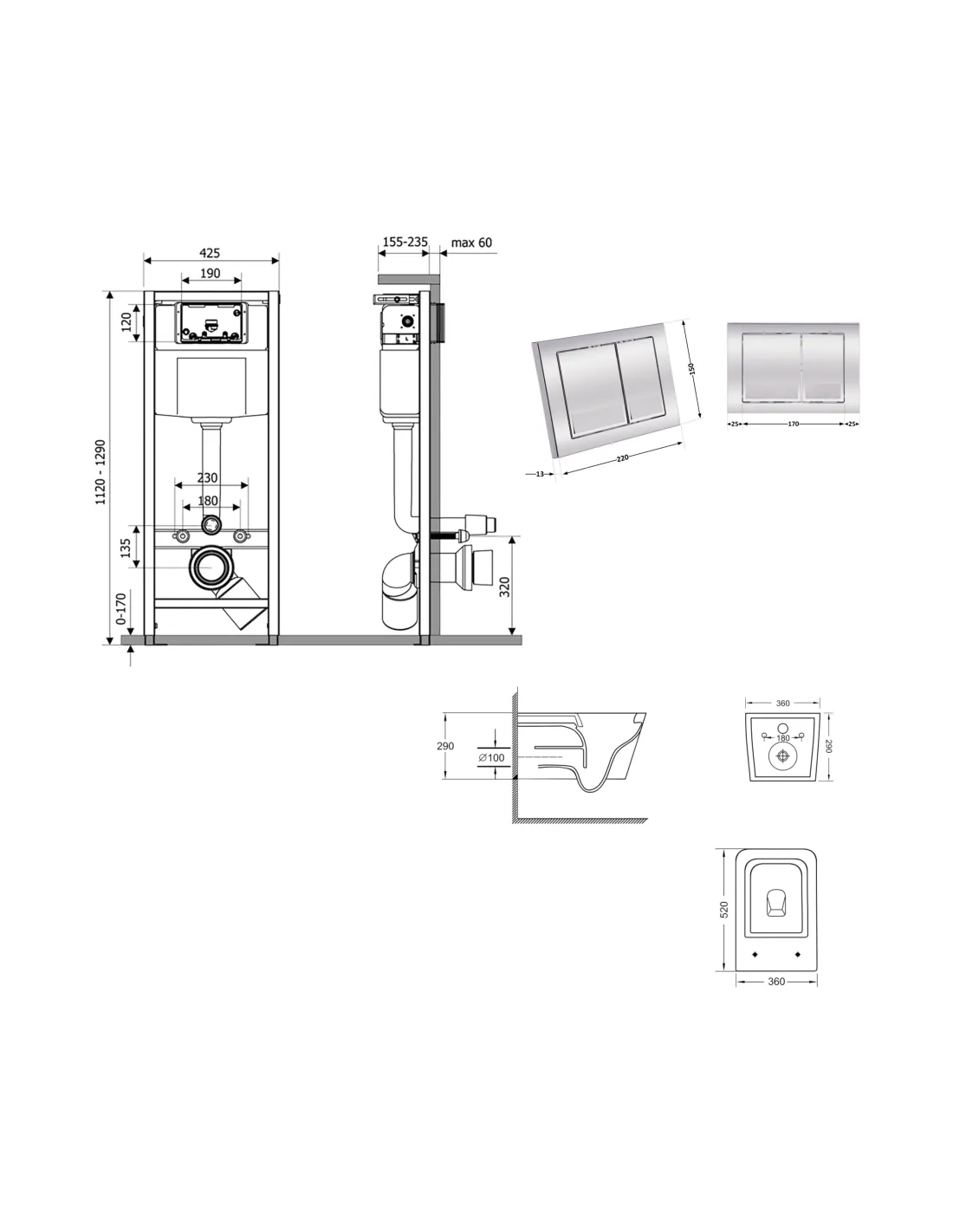 - Габариты панели смыва (ДхШхГ) - 220х13х150 мм;