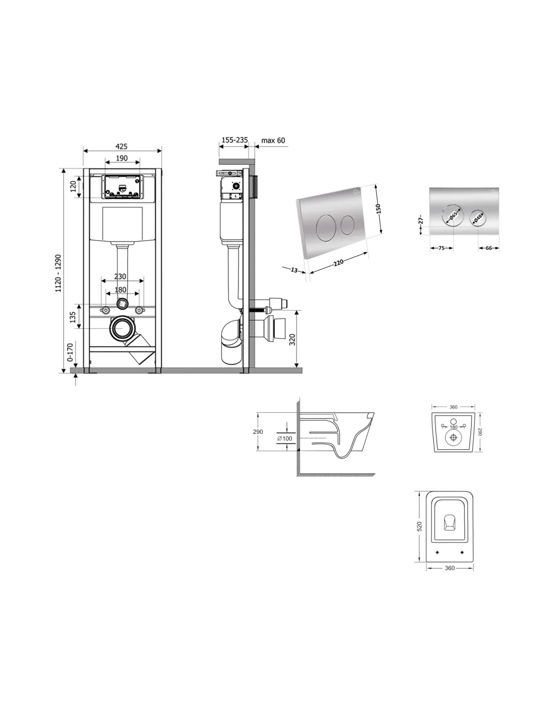 - Габариты унитаза (ДхШхГ) - 520х360х290 мм;