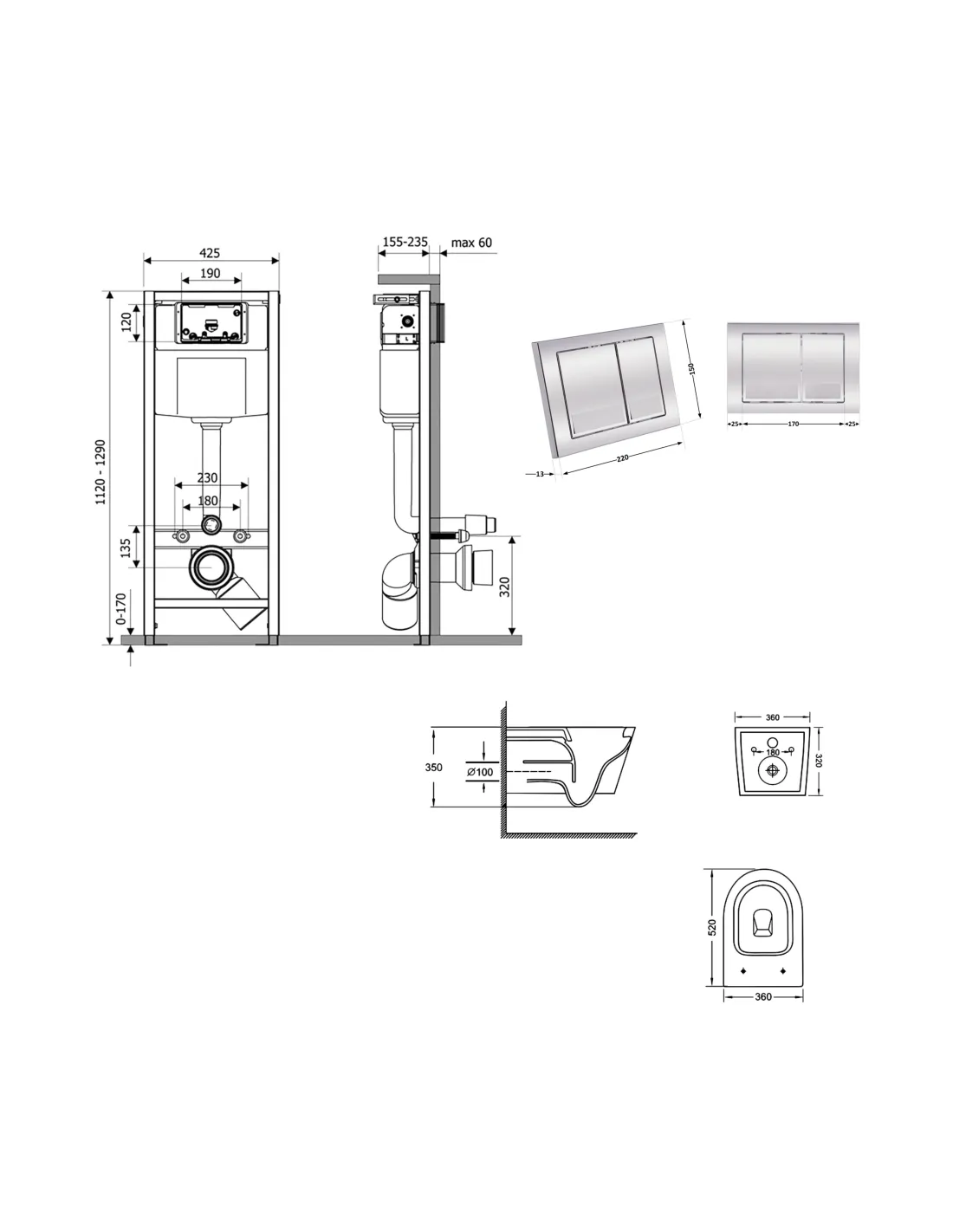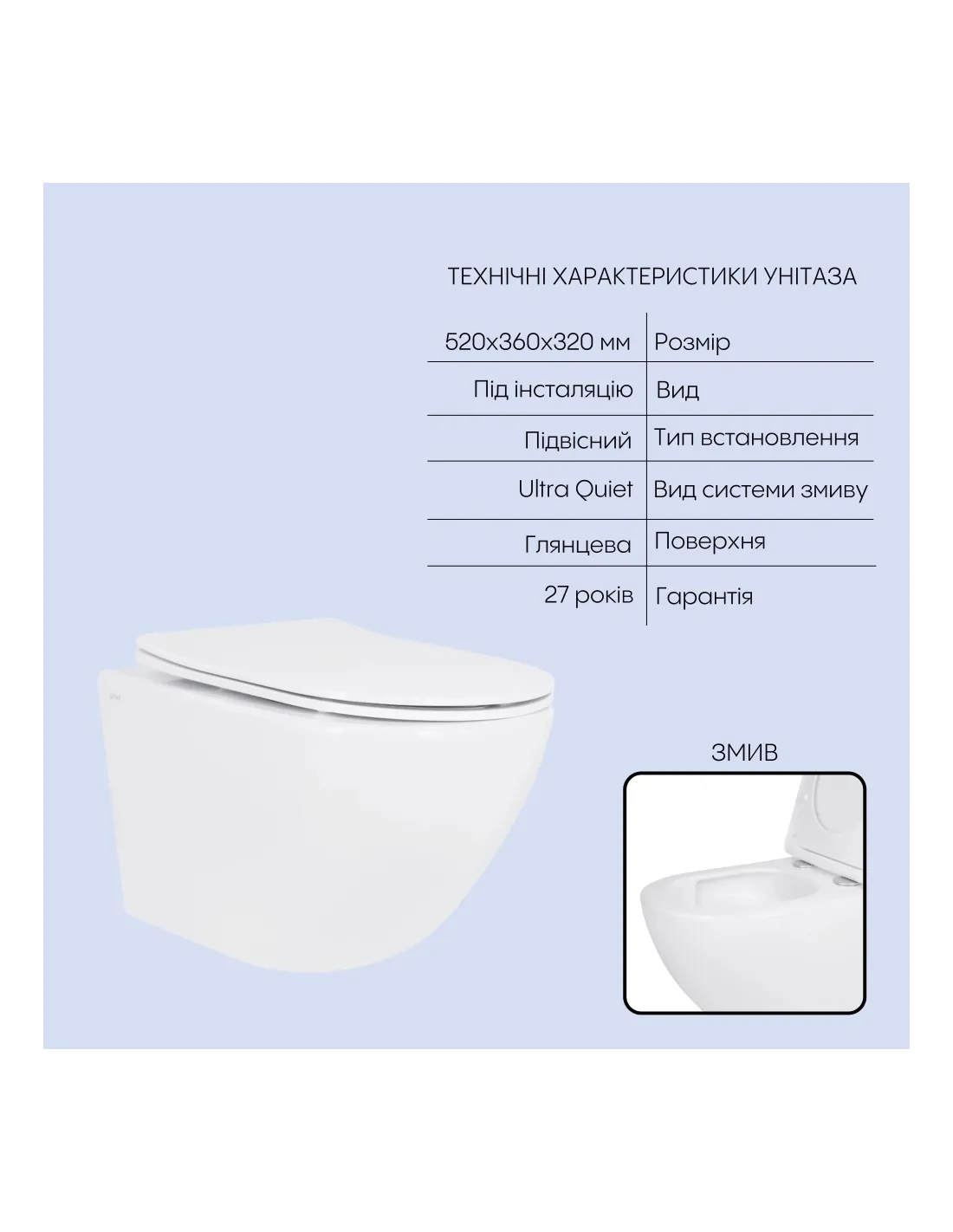 - Габариты унитаза (ДхШхГ) - 520х360х320 мм;