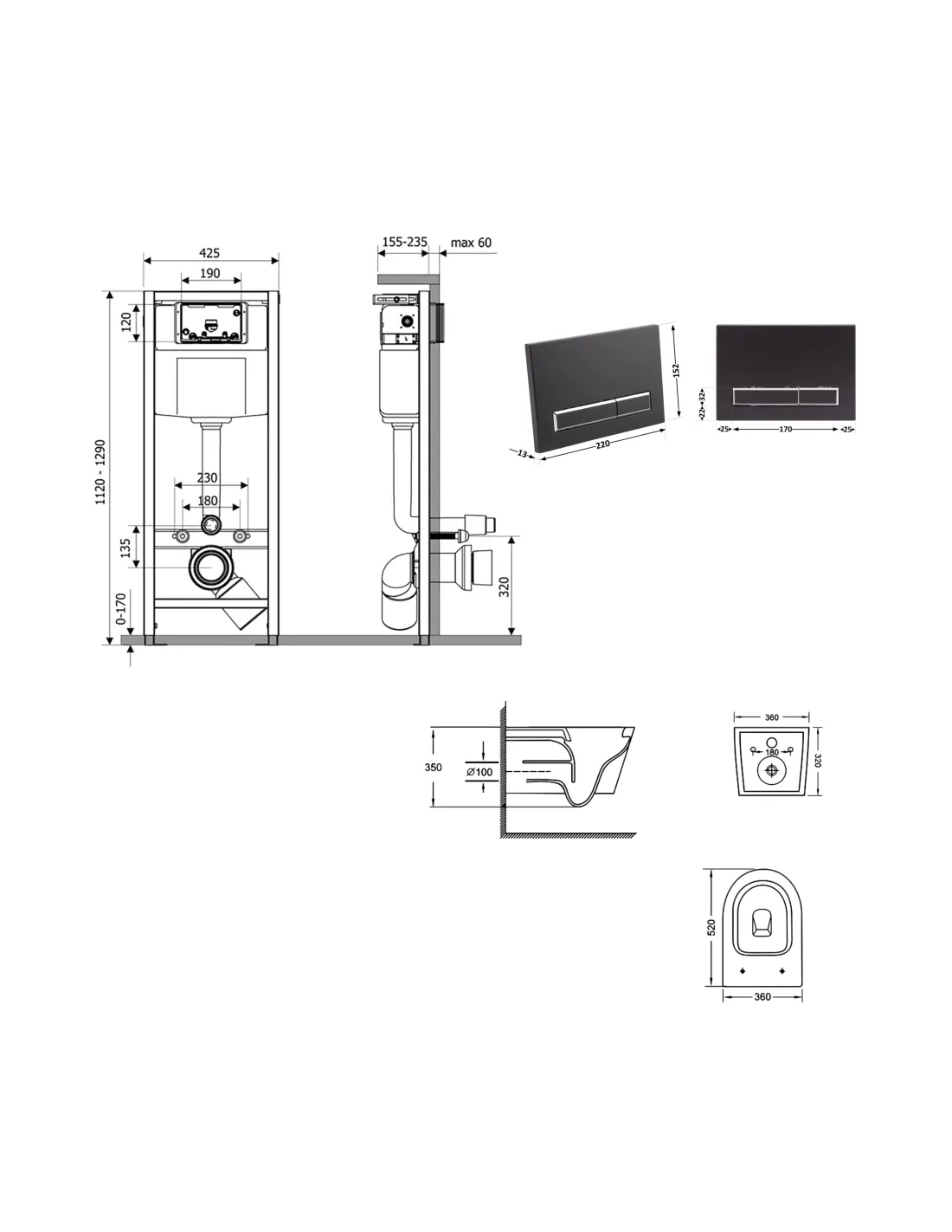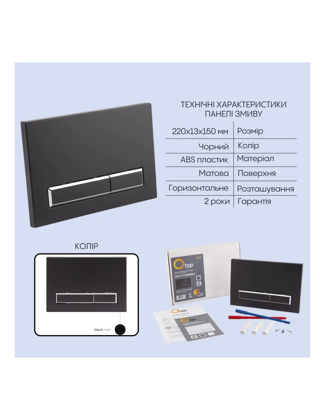 - Габариты панели смыва (ДхШхГ) - 220х13х150 мм;