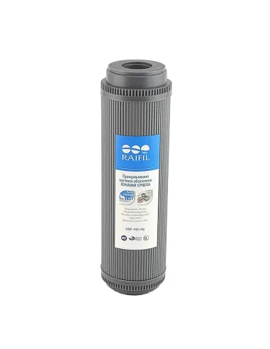 Картридж вугільний насипний Raifil GAC-10R-ARG 10 дюймів призначений для очищення води від хлору, органічних сполук, пестицидів, інсектицидів, нафтопродуктів та механічних частинок розміром до 10 мікрон. Завдяки наповненню з гранульованого активованого вугілля зі шкаралупи кокосового горіха картридж ефективно усуває неприємний присмак та запах води. Додатково картридж збагачений іонами срібла, що перешкоджає розвитку бактерій усередині фільтруючого елемента.