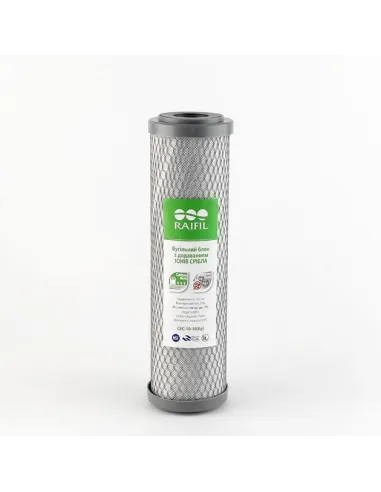 Картридж вугільний пресований Raifil CBC-10-10 ARG 10 мікрон, 10 дюймів є системою вугільного картриджа. Призначений для попереднього очищення води та видалення окисленого заліза (іржі), частинки мулу, глини, піску, мікроорганізмів, волокна торфу, шкідливих органічних сполук та хлору. Використовується в проточних фільтрах очищення води та системах зворотного осмосу. Типорозмір картриджів: 2.5 х 10 дюймів. Незамінний у квартирах та приватних, заміських, дачних будинках, котеджах. Значно покращує смакові якості води, видаляючи неприємний присмак та сторонні запахи.