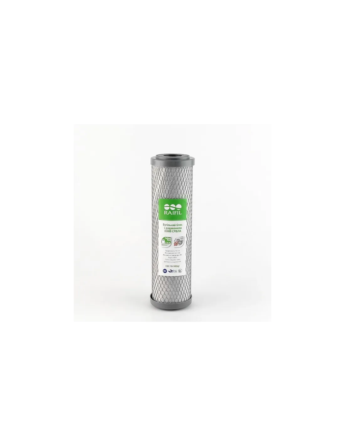Картридж вугільний пресований Raifil CBC-10-10 ARG 10 мікрон, 10 дюймів складається з однієї стадії очищення. Рейтинг фільтрації: 10 мкм. Картридж виготовлений із високоякісного кокосового активованого спресованого вугілля. Принцип роботи картриджа ґрунтується на поглинанні забруднювачів молекулами сорбенту. Пориста структура вугілля дозволяє затримувати шкідливі компоненти органічних сполук, пестицидів, фенолів, гербіцидів, нітратів, нафтопродуктів, важких металів, хлору. Заміна картриджів повинна проводитися не рідше одного разу на півроку. Фактичний термін служби залежатиме від якості вихідної водопровідної води.