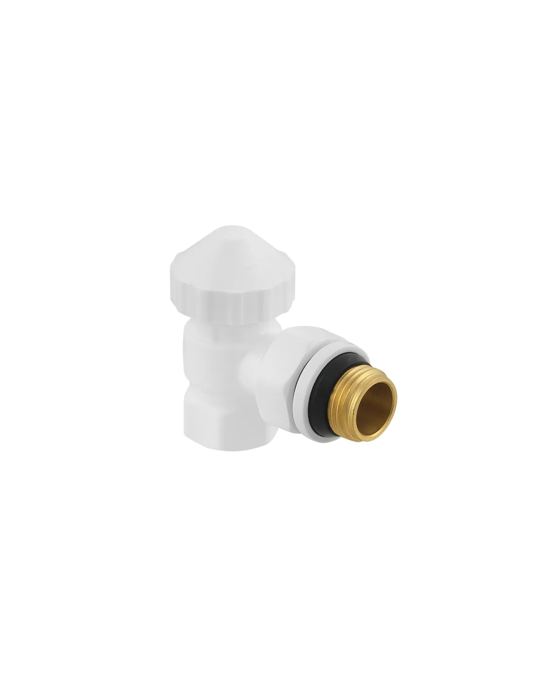 Клапан запірний для радіатора Raftec WHITE DKPT11-W кутовий, 1/2 x 1/2 дюйми - призначений для автоматичного або ручного регулювання витрати теплоносія, що проходить через опалювальний прилад водяної системи опалення. Як робоче середовище, крім води, можуть використовуватися інші середовища, нейтральні по відношенню до матеріалів клапана.