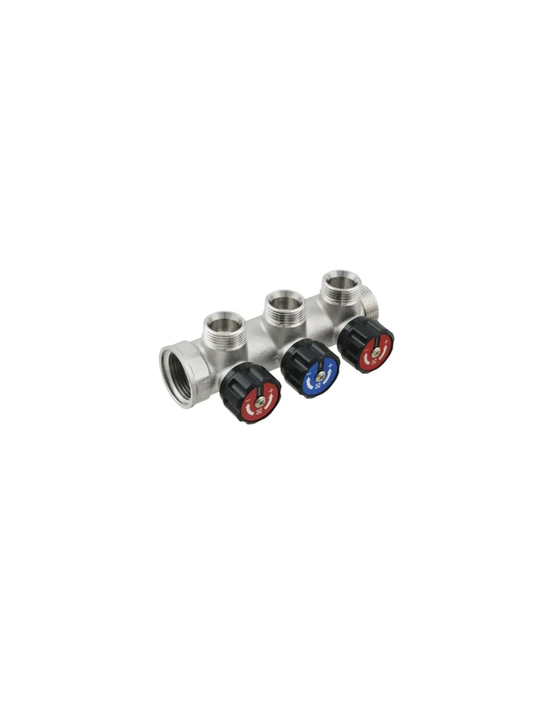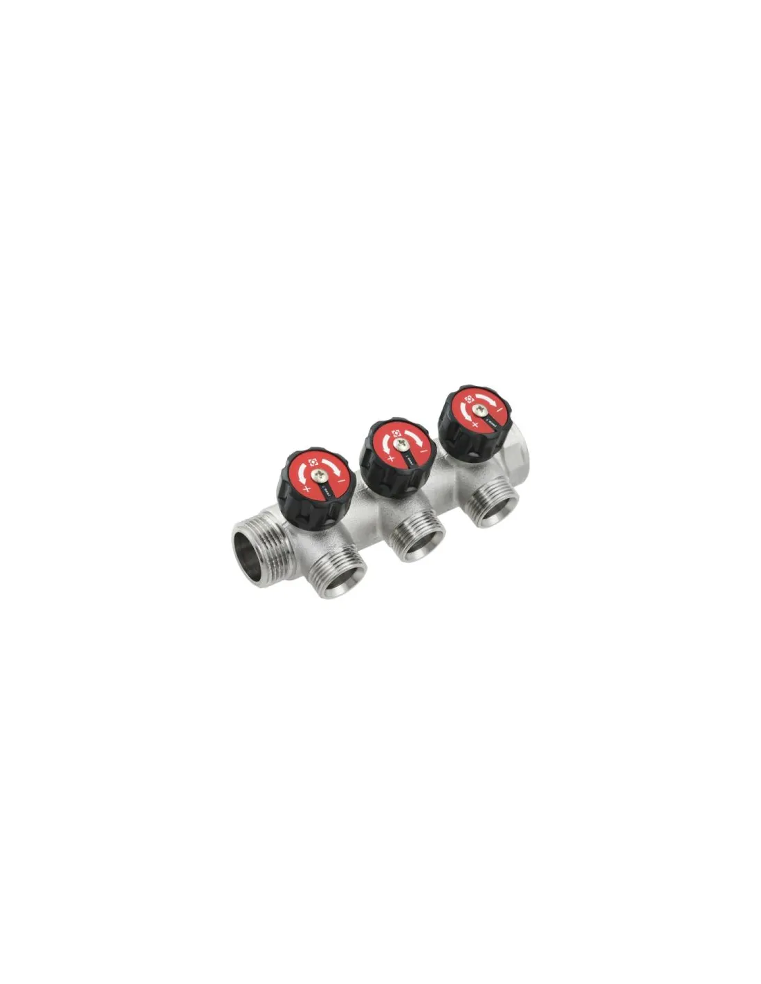 Колектор для теплої підлоги Raftec KV03023 3 виходи, з регулюючими вентилями, 1х3/4 дюйми - використовується для організації розподільного вузла системи опалення. Дозволяє незалежно керувати трьома гілками теплої підлоги, забезпечуючи їх ефективну роботу та легкість обслуговування в процесі експлуатації. втрати.