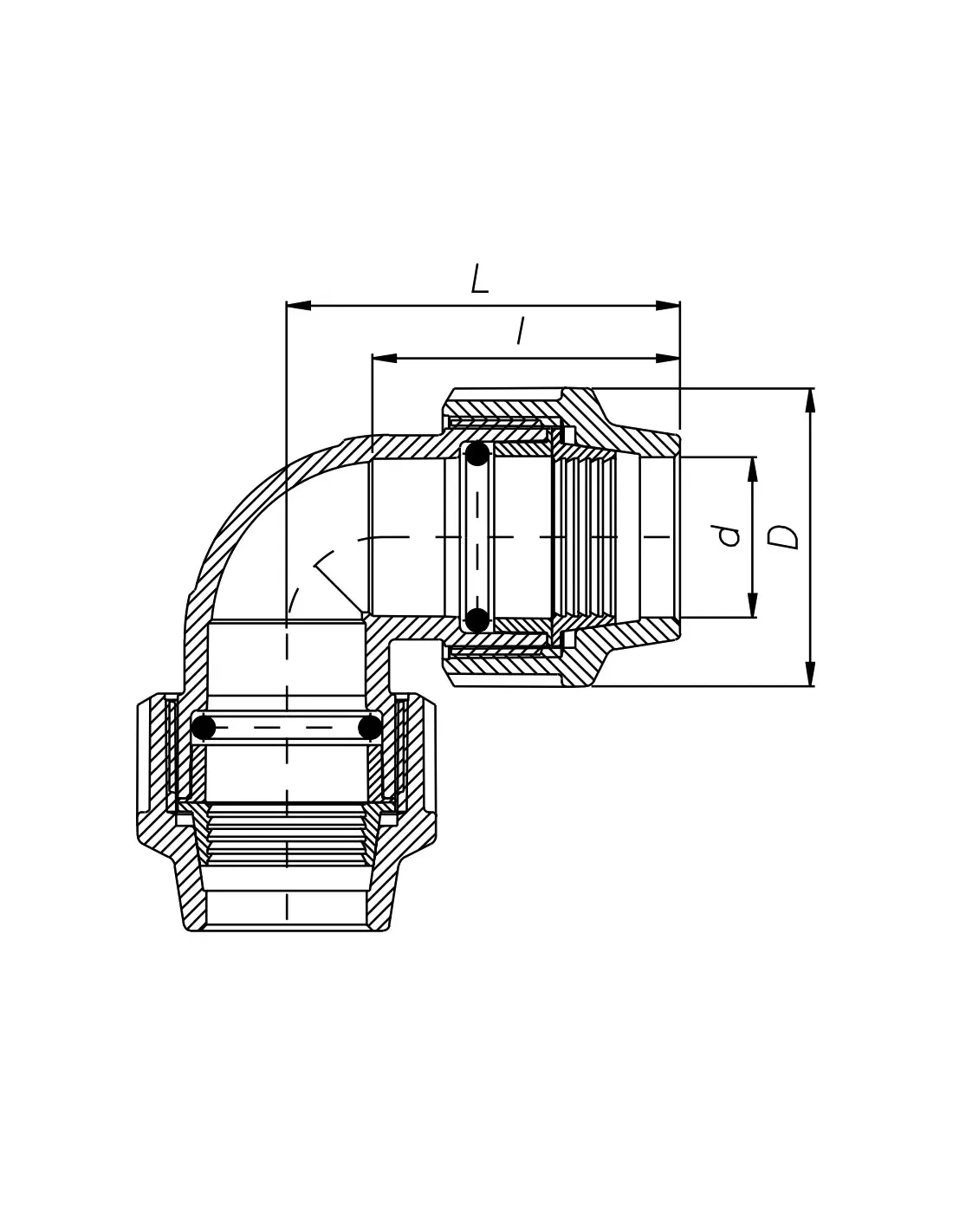 Технічні характеристики коліна 90 ITAL ПЕ 25 мм: