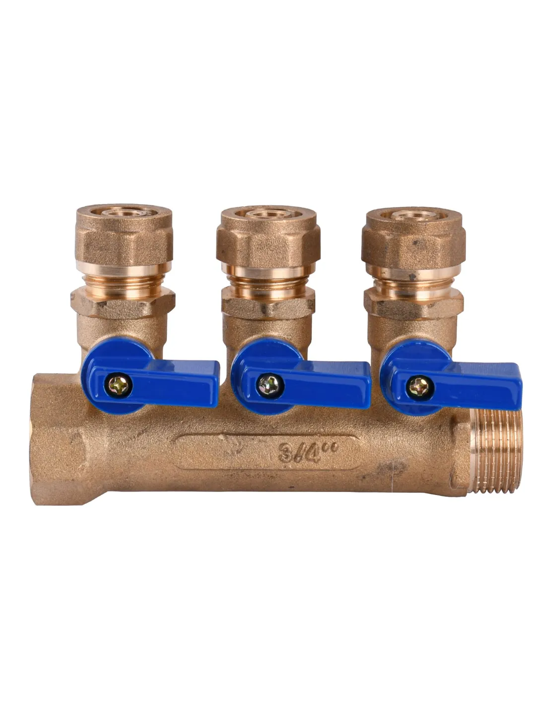 Коллектор латунный Cristal NM-1018 3/4 дюйма (16мм) предназначен для равномерного распределения тепловой энергии в контурах системы «водный теплый пол». Количество выходов – 3. Максимальная рабочая температура на входе в коллектор – 110 градусов по Цельсию. Диаметр подключения контура: 3/4 дюйма внешняя и наружная резьба. Диаметр выхода на PEX трубу: 16 мм. Резьба подключения к системе – внутренняя. Резьба подключения контура – наружная. Гарантия: 12 месяцев. Страна производитель: Китай.