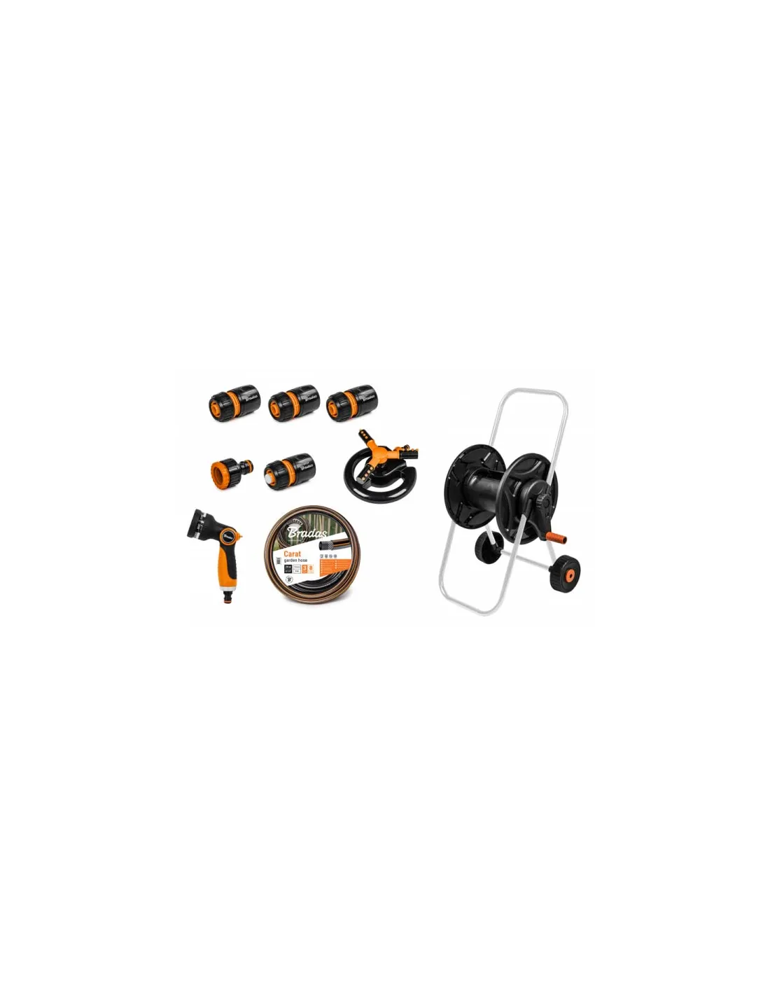Комплект для поливу Bradas Black Line ECO-AG26020SET2 - призначений для організації поливу на садовій ділянці. Обертаюча вісь котушки перешкоджає перекручуванню шланга при його змотуванні та розмотуванні. Комплект включає поливальний шланг Carat 1/2 дюйма 20 метрів, сполучну арматуру. Гарантія на виріб 12 місяців. Країна-виробник - Польща.