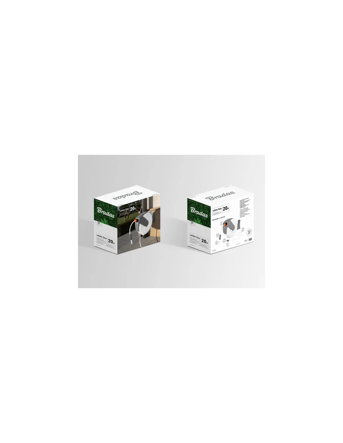 Котушка автоматична Bradas White Line WL-W6B35 обладнана системою плавного уповільнення змотування шланга, що запобігає різким ривкам і пошкодженням. Також передбачено функцію фіксації шланга на вибраній довжині. Зручна ручка полегшує перенесення пристрою.