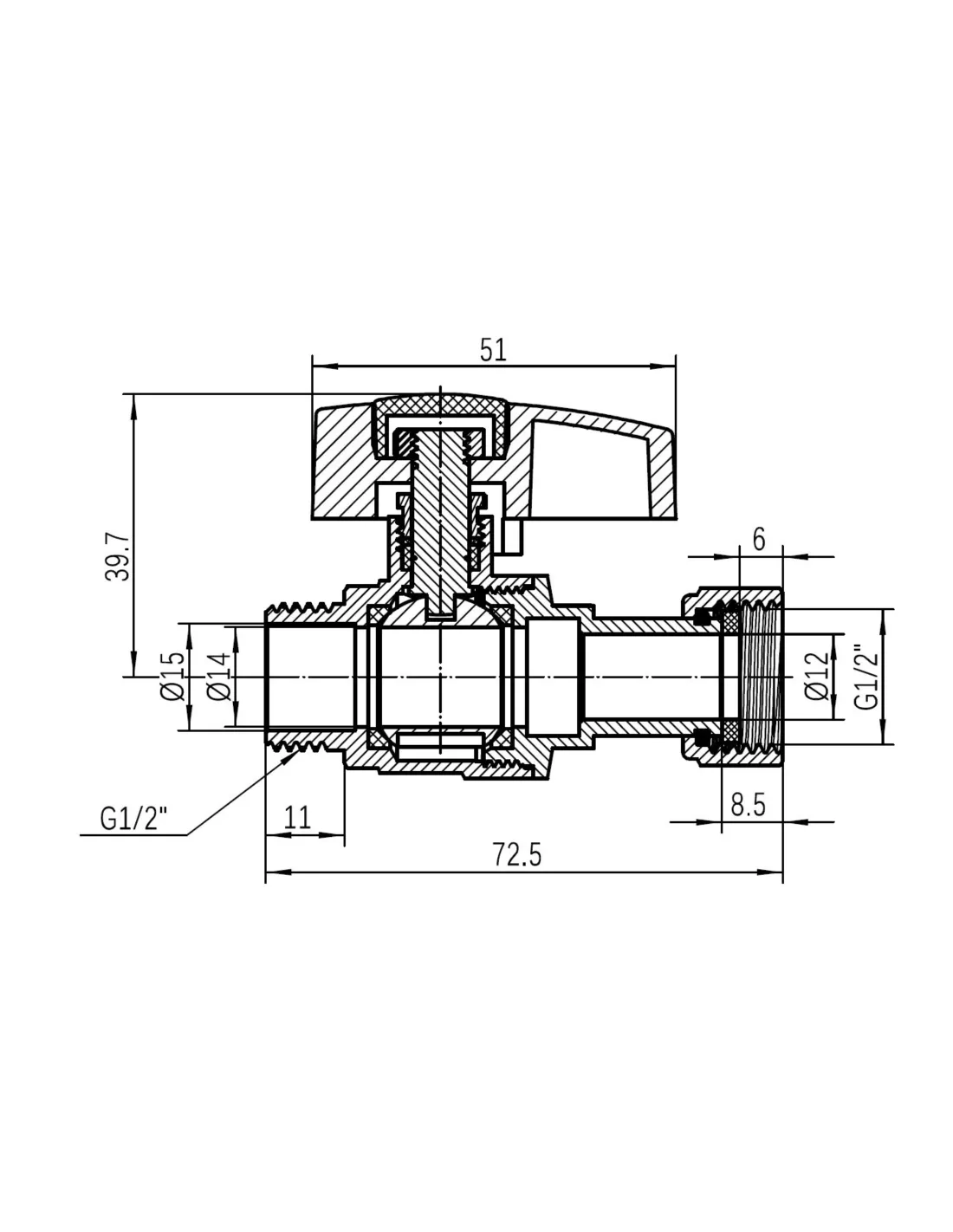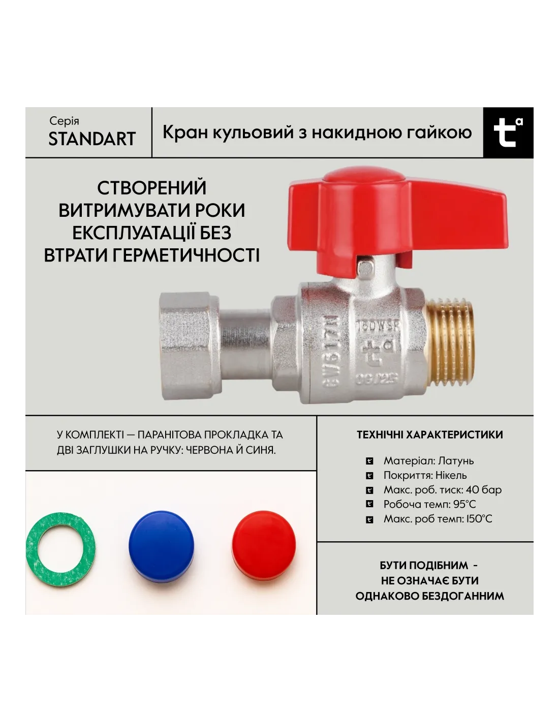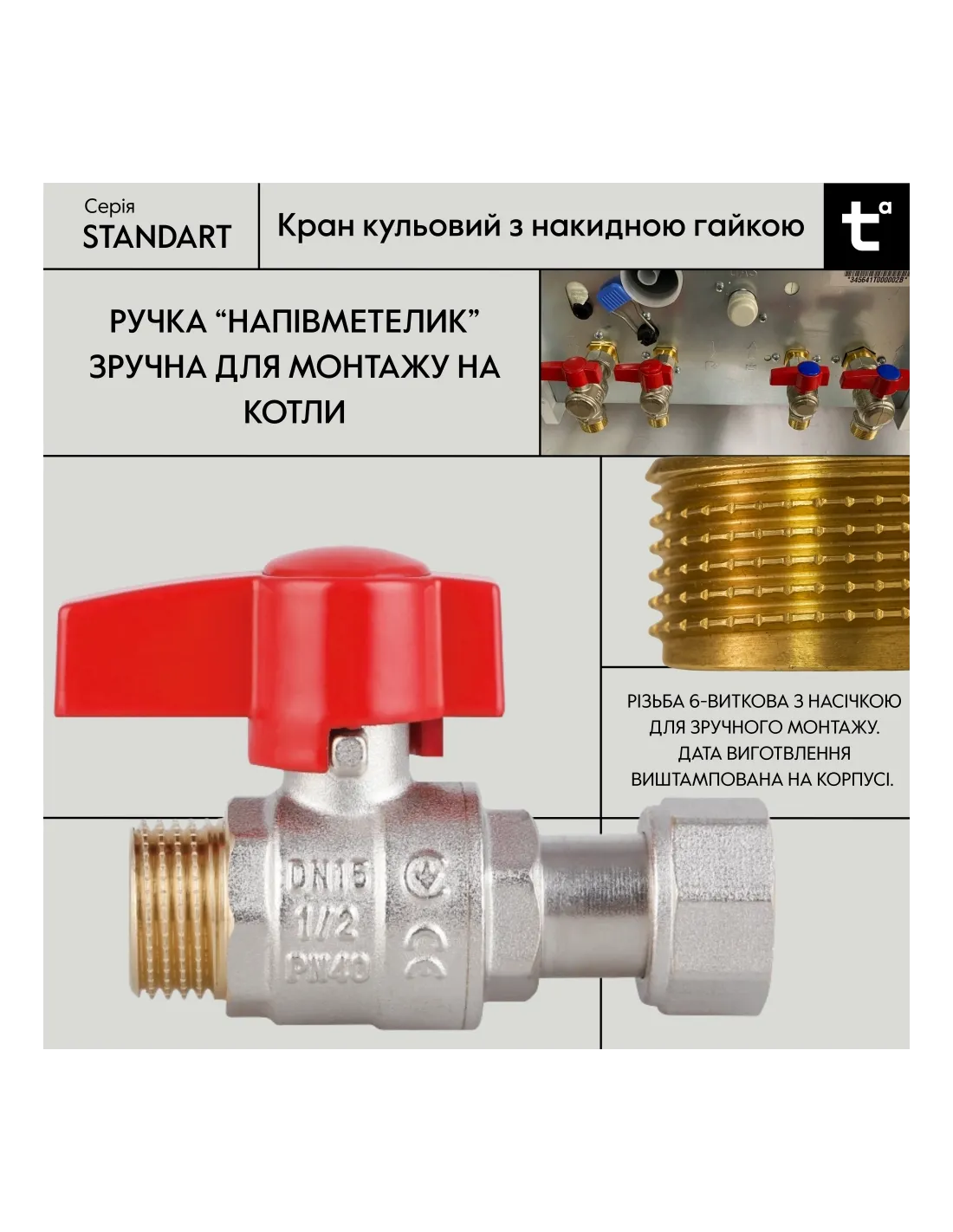 Технічні характеристики крана кульового з накидною гайкою Thermo Alliance TAS261W15 ВН 1/2 дюйма: