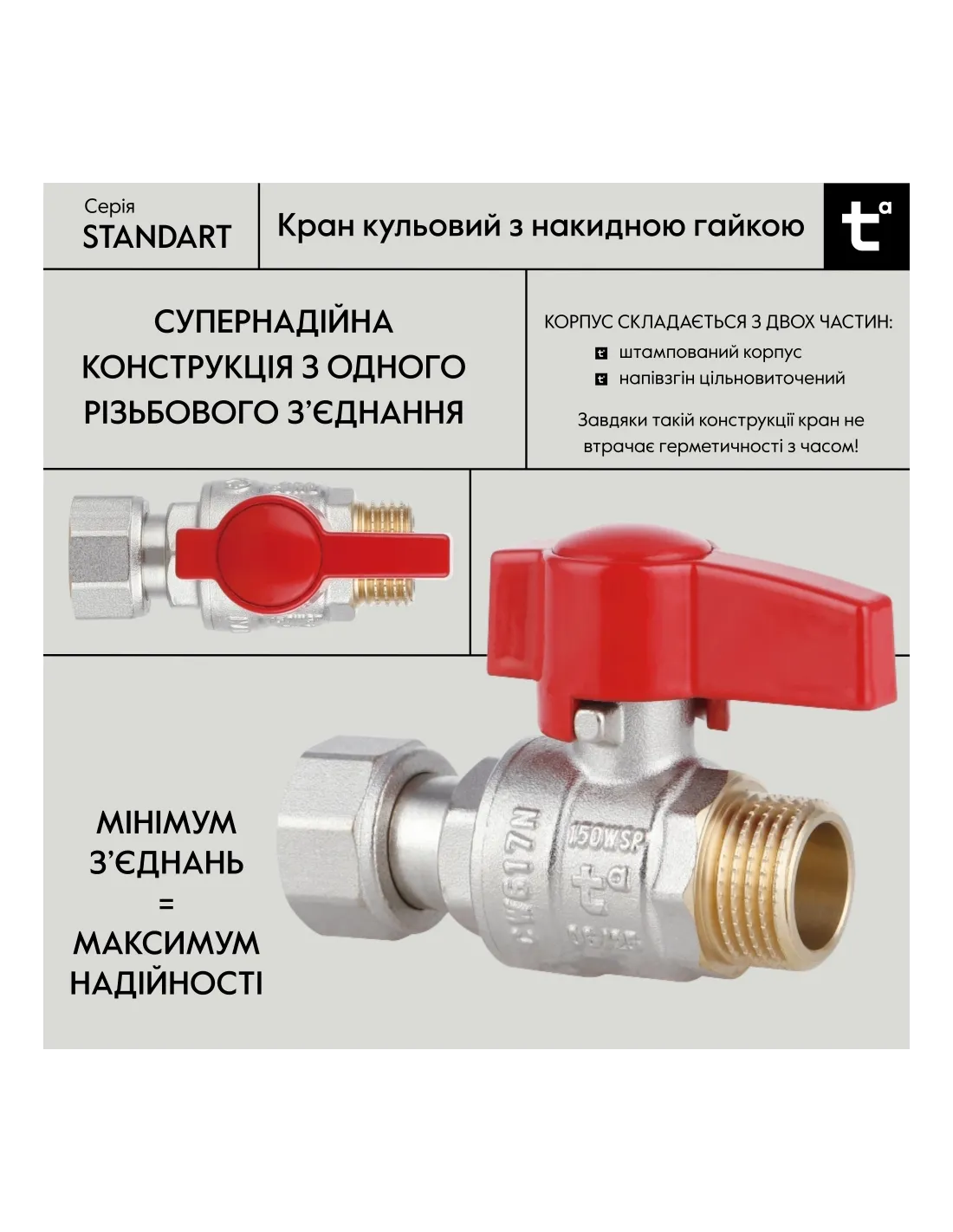 Магазин КТУ надає можливість купити кран шаровий прямий з накидною гайкою Thermo Alliance Standart TAS261W15 ВН 1/2 дюйми за вигідною ціною з нашого каталогу. Швидко доставимо кран у Київ, Одесу, Дніпро, Харків, Львів та будь-яке інше місто України.