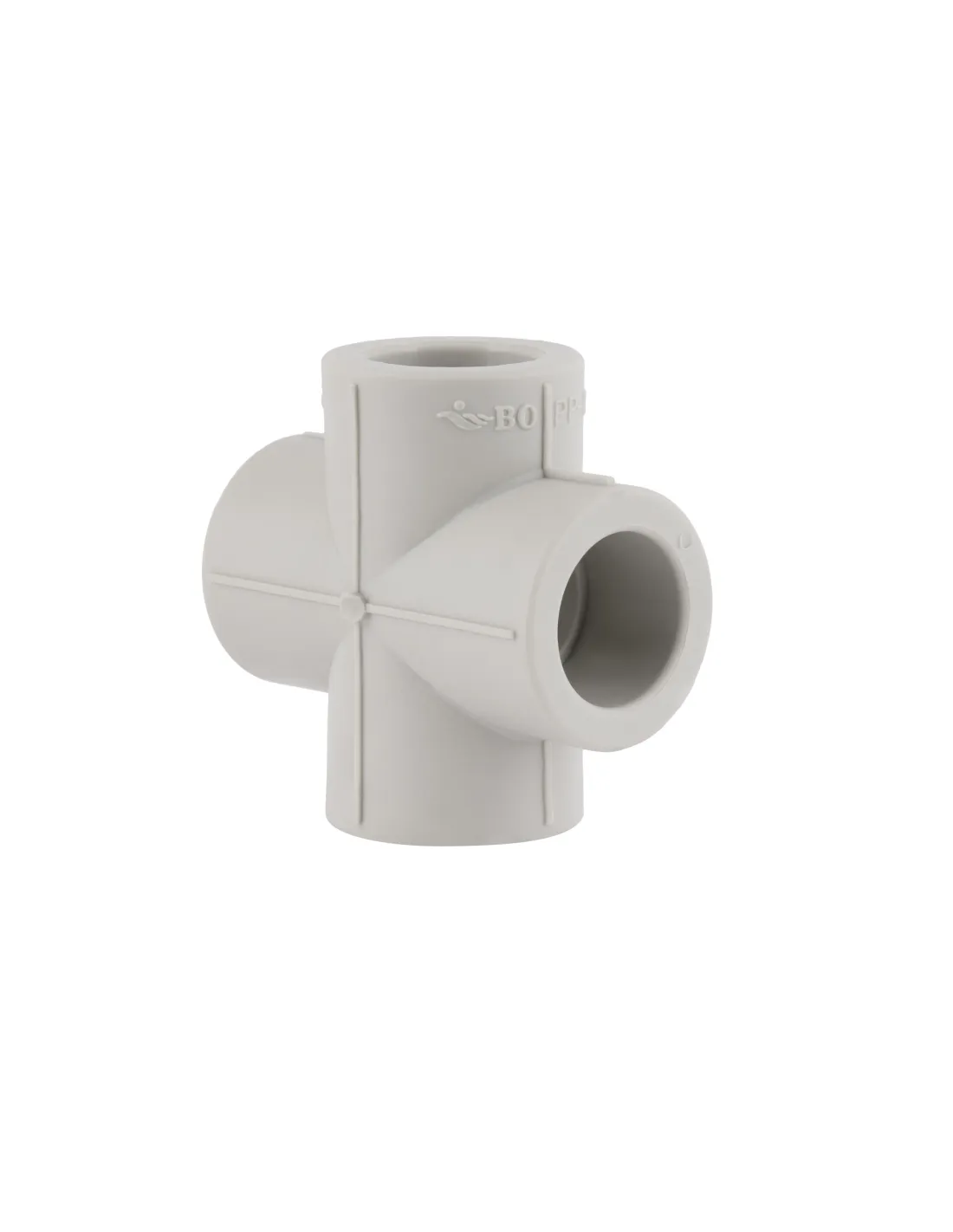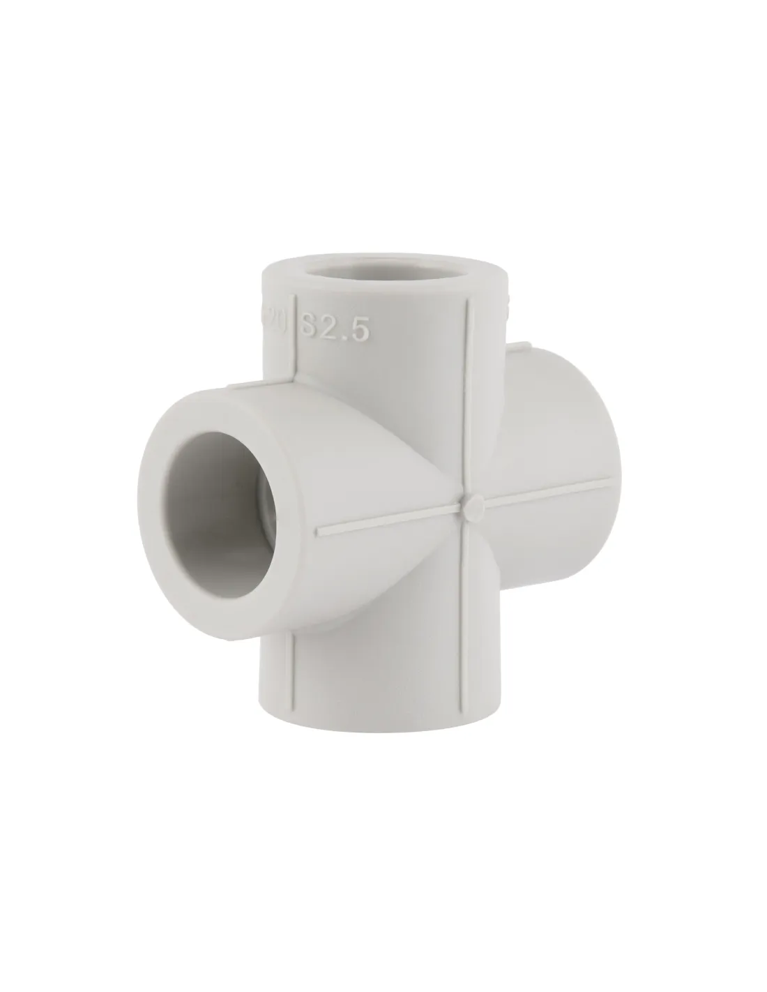 Изделие выполнено из высококачественного полипропилена (PPR PN20), что гарантирует его устойчивость к коррозии, агрессивным средам и высоким температурам. Крестовина подходит для использования в системах холодного и горячего водоснабжения, а также в отоплении при рабочем давлении до 20 бар.