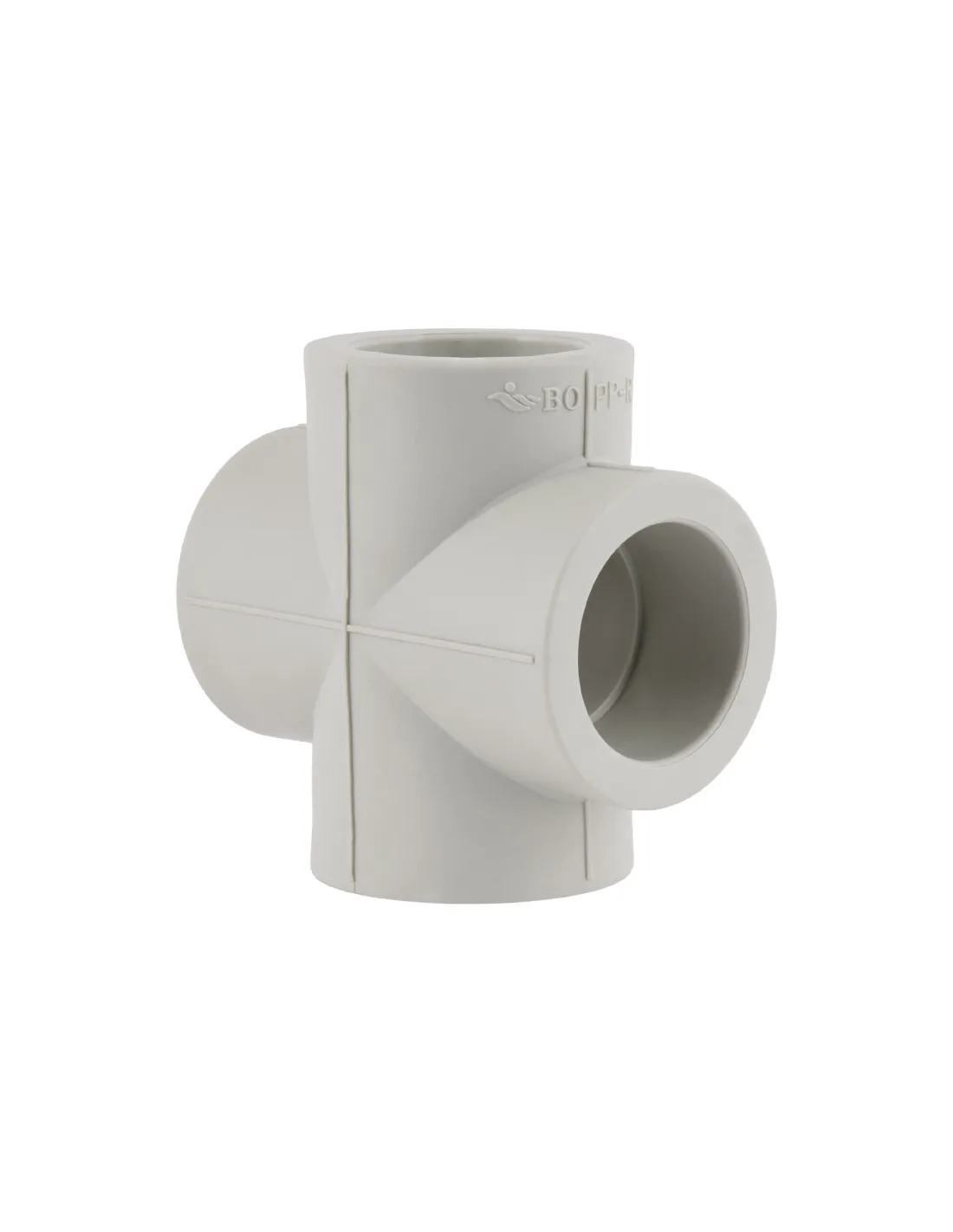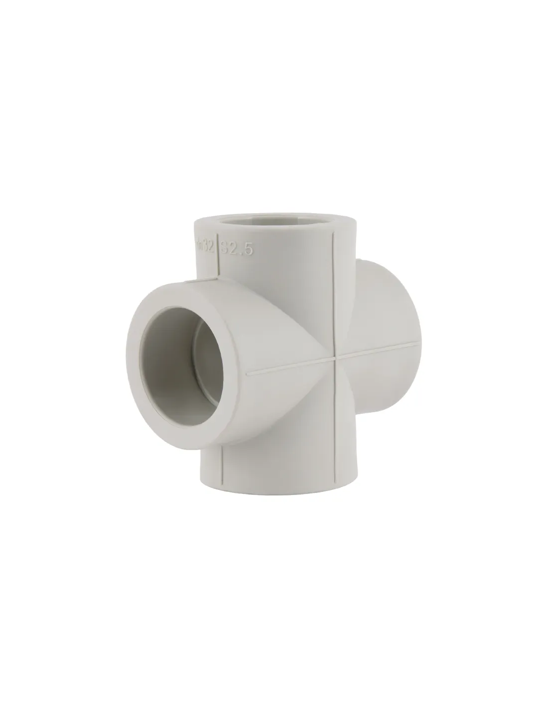 Изделие выполнено из высококачественного полипропилена (PPR PN20), что гарантирует его устойчивость к коррозии, агрессивным средам и высоким температурам. Крестовина подходит для использования в системах холодного и горячего водоснабжения, а также в отоплении при рабочем давлении до 20 бар.