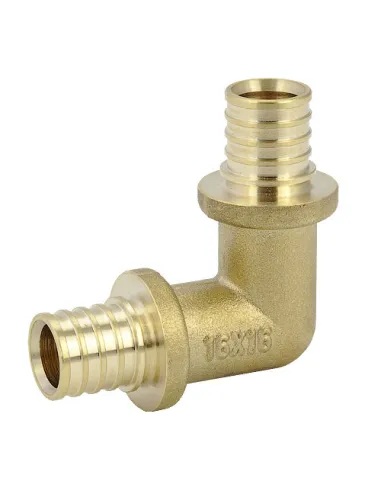 Кут латунний Fado 20 мм, натяжний є незамінним у будь-яких трубопровідних системах для з`єднання під кутом 90 градусів труб з PEX або PE-RT. Матеріал виготовлення латунь - міцний та стійкий до корозії, що забезпечує надійну, довготривалу службу виробу. Монтаж фітингу здійснюється ручним чи гідравлічним інструментом.