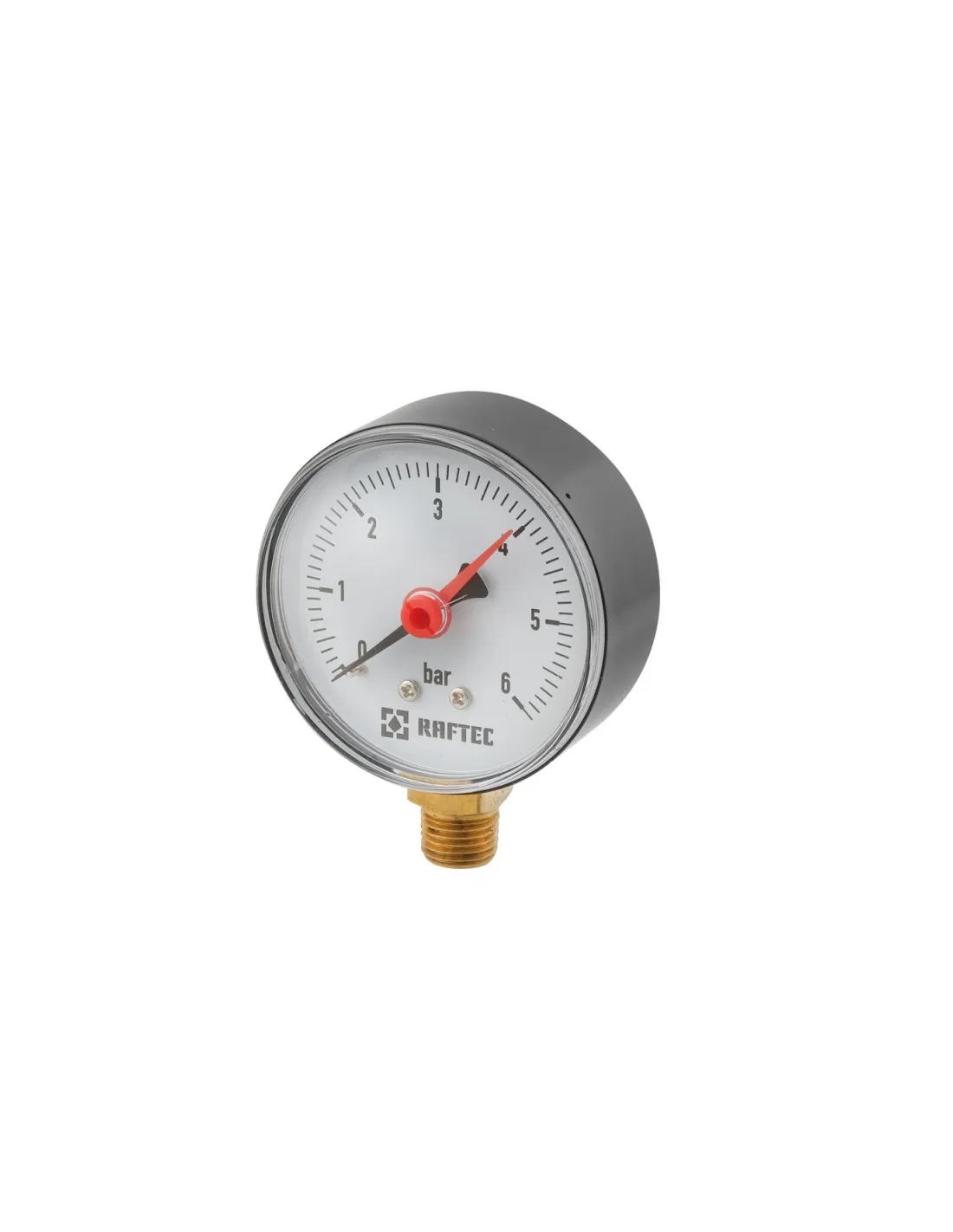 Манометр Raftec ф63 радиальный, 6 bar, 1/4 дюйма, нижнее подключение